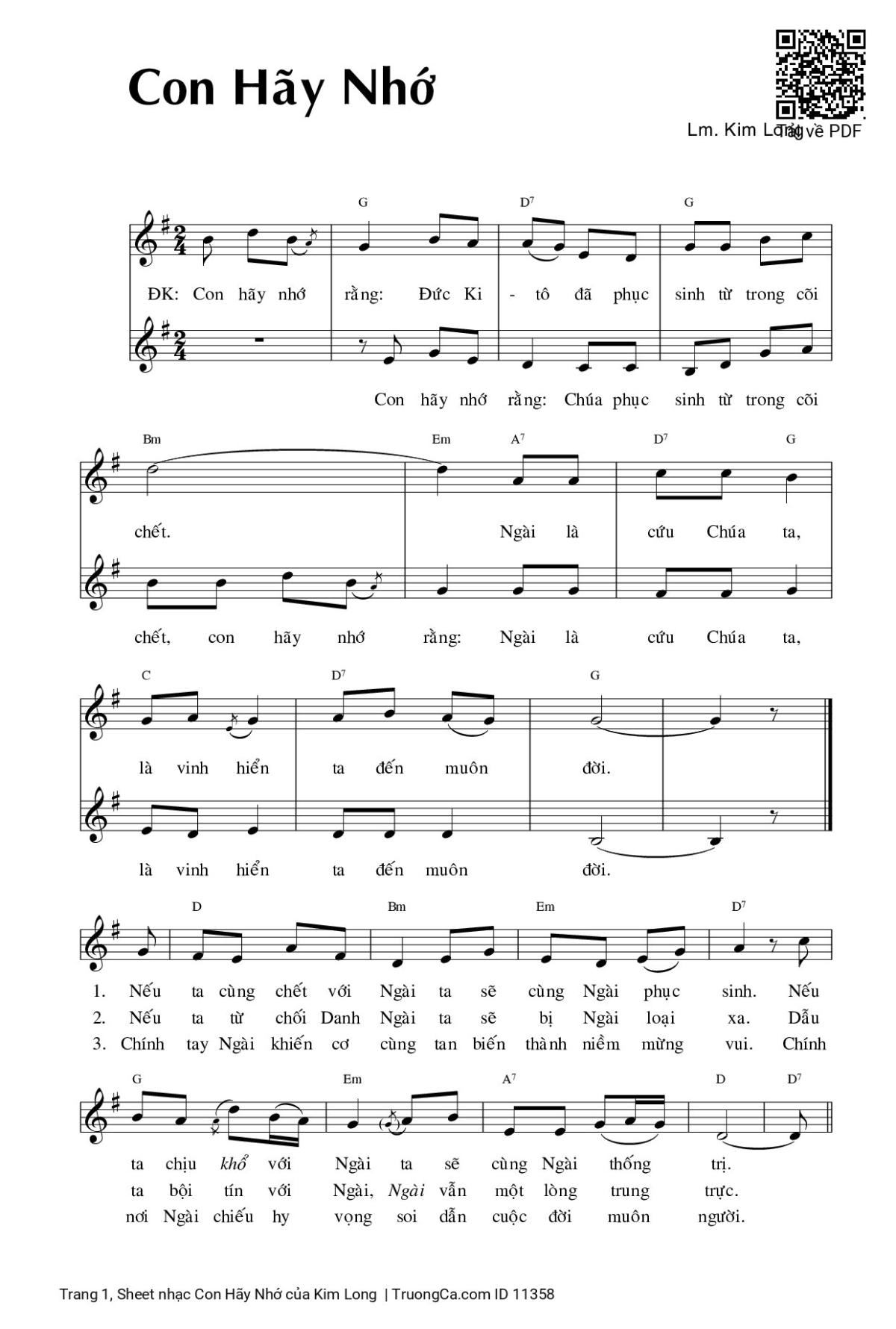 Kim Long Con hãy nhớ rằng Đức Kitô đã phục sinh từ trong cõi chết [PDF] [Sheet] [Lời H.A] [Mp4/Midi]