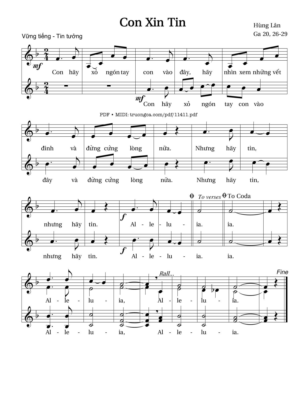 Các sheet PDF tương tự Con Xin Tin: