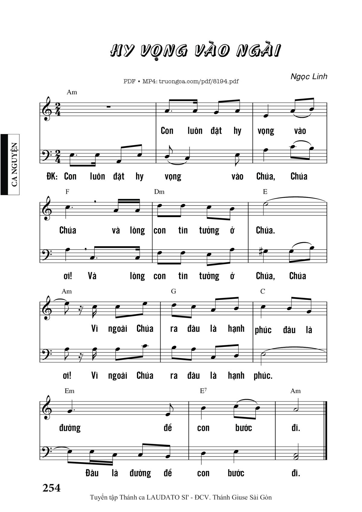 Ngọc Linh Con luôn đặt hy vọng vào Chúa và lòng con tin tưởng ở Chúa [PDF] [Sheet] [Lời H.A] [Mp4/Midi]
