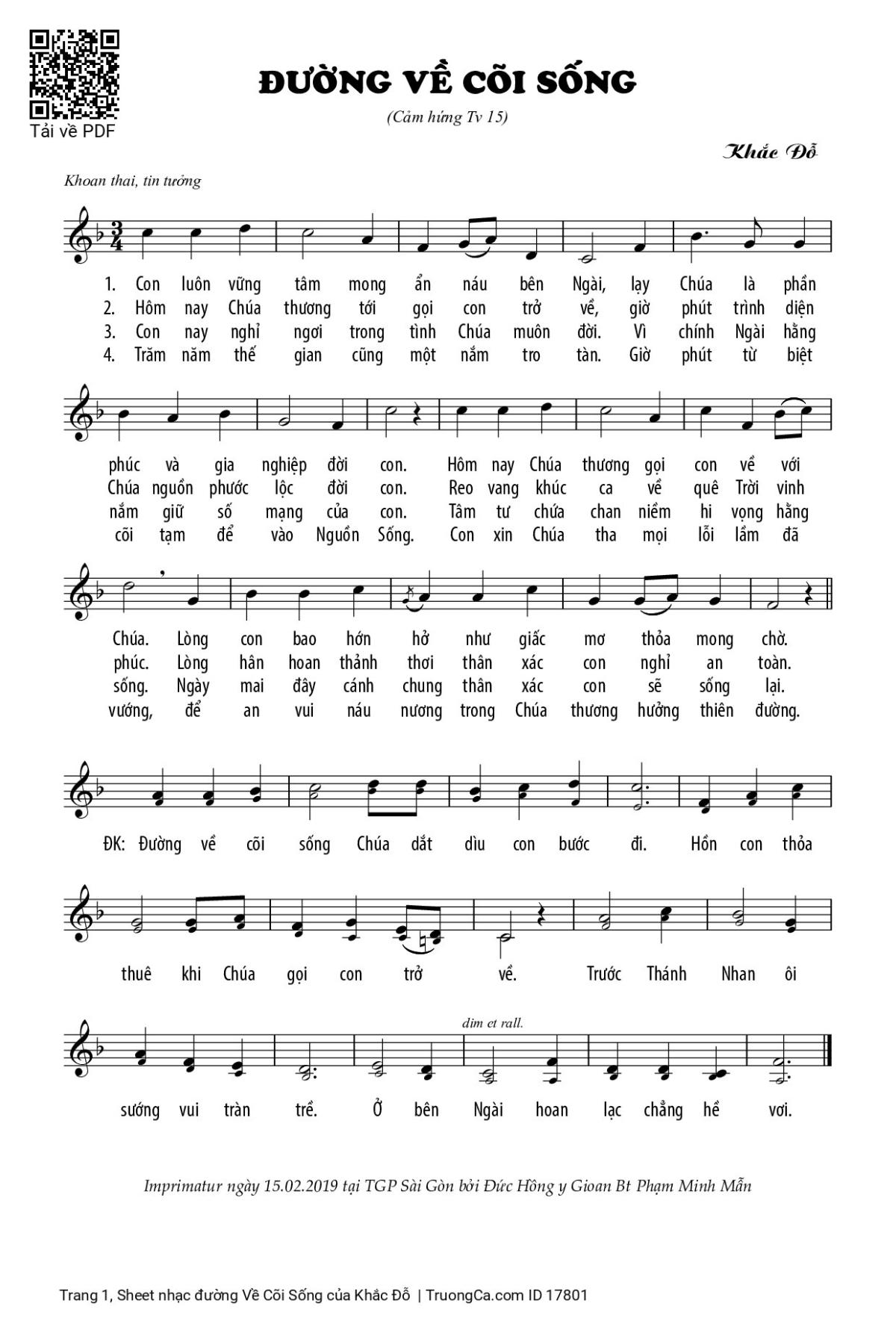 Điệp khúc: Đường về cõi sống Chúa dắt dìu con bước đi. Hồn con thoả thuê khi Chúa gọi con trở về. Trước Thánh Nhan ôi sướng vui tràn trề. Ở bên Ngài hoan lạc chẳng hề vơi.