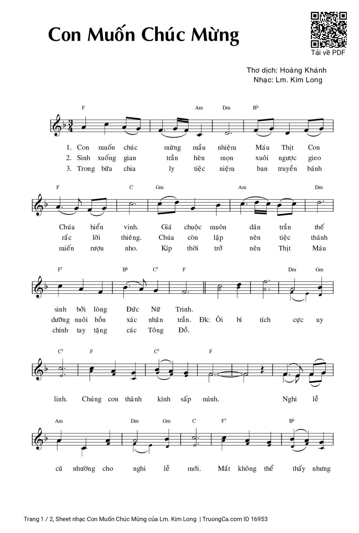 1. Con muốn chúc mừng mầu nhiệm. Máu Thịt Thiên Chúa hiển vinh. Giá chuộc muôn dân trần thế. Sinh bởi lòng Ðức Nữ Trinh.