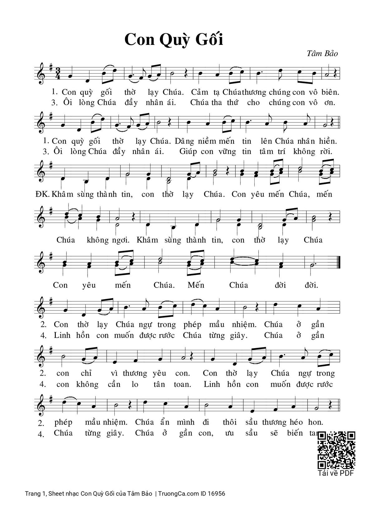 1/ Con quỳ gối thờ lạy Chúa. Cảm tạ Chúa thương chúng con vô biên. Con quỳ gối thờ lạy Chúa. Dâng niềm kính tin lên Chúa nhân hiền.