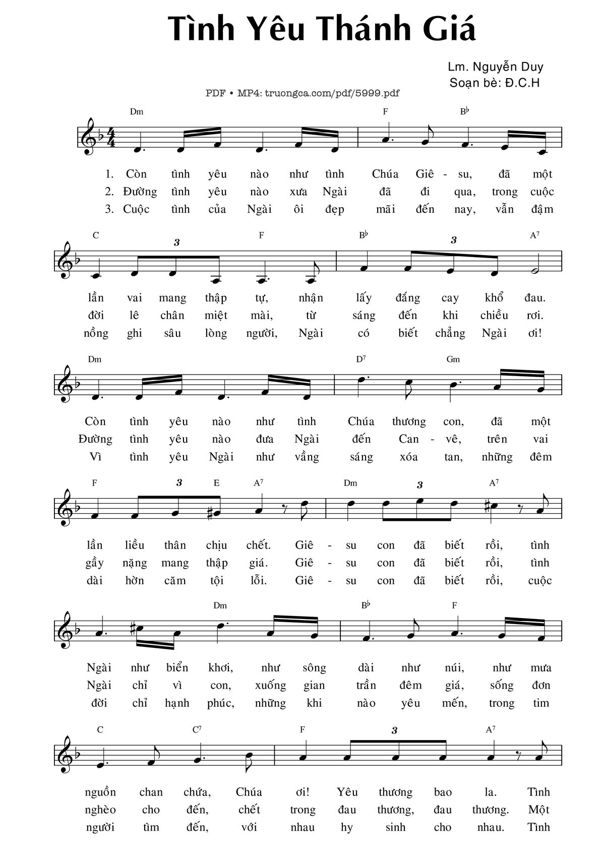 Lm. Nguyễn Duy Còn tình yêu nào như tình Chúa Giêsu Đã một lần vai mang thập tự [PDF] [Sheet] [Lời H.A] [Mp4/Midi]