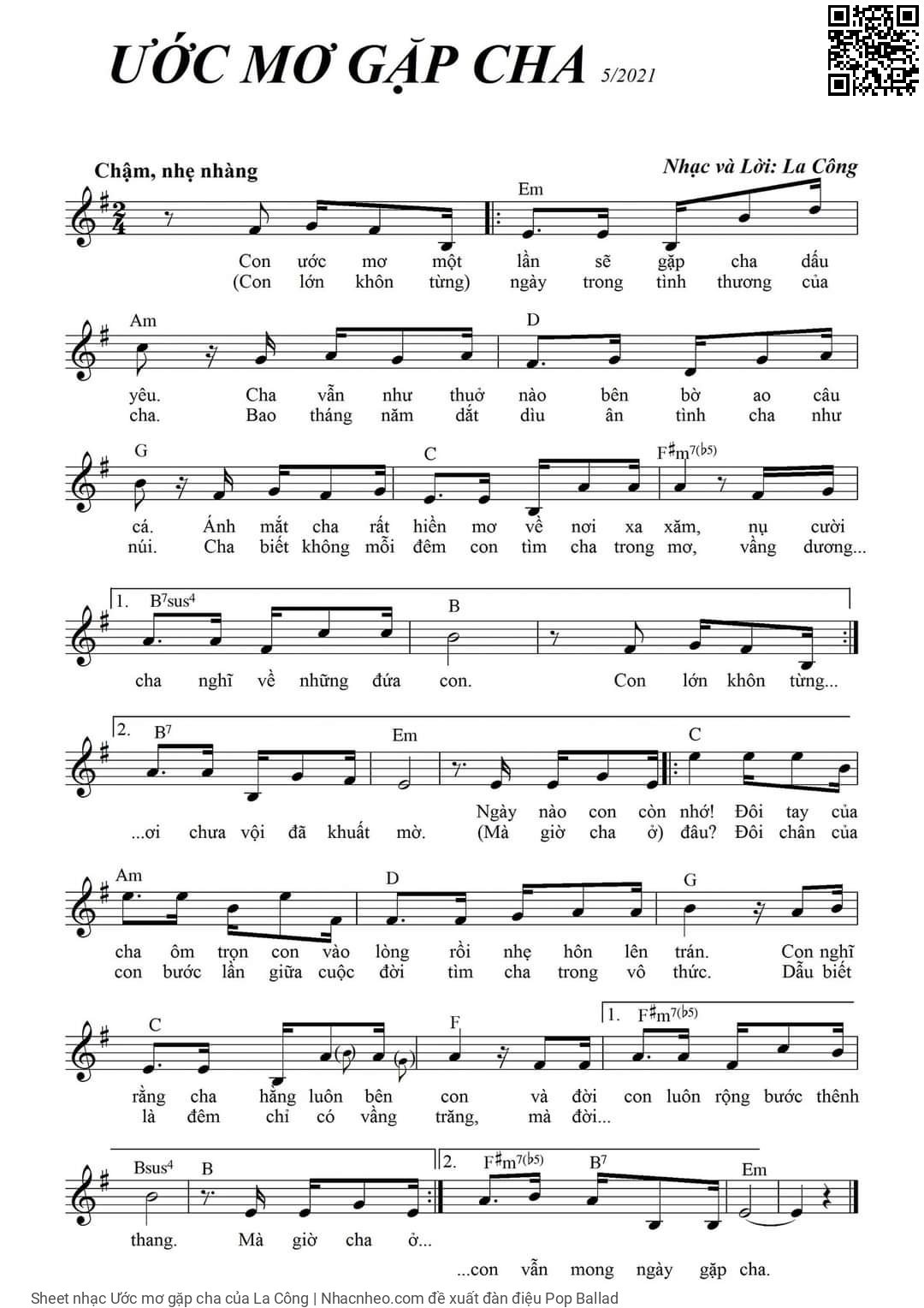 La Công Con ước mơ một lần Sẽ gặp cha dấu yêu [PDF] [Sheet] [Lời H.A] [Mp4/Midi]