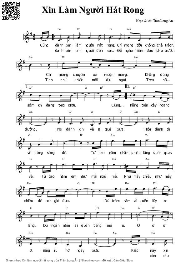 Trần Long Ẩn Cũng đành xin làm người hát rong Chỉ mong đời không chê trách [PDF] [Sheet] [Lời H.A] [Mp4/Midi] [Lời bình - giai thoại]