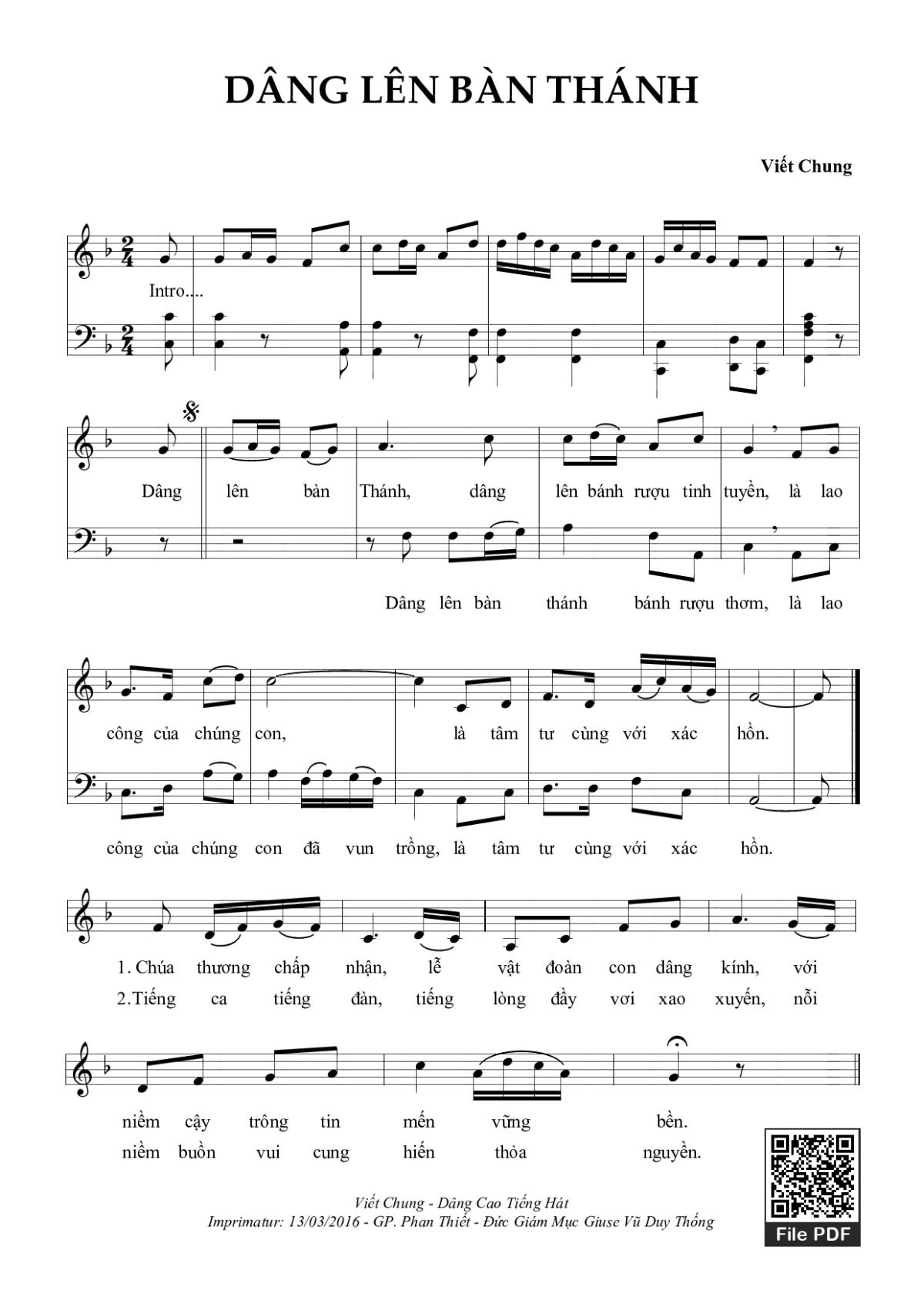 Viết Chung Dâng lên bàn thánh dâng lên bánh rượu tinh tuyền [PDF] [Sheet] [Lời H.A] [Mp4/Midi]