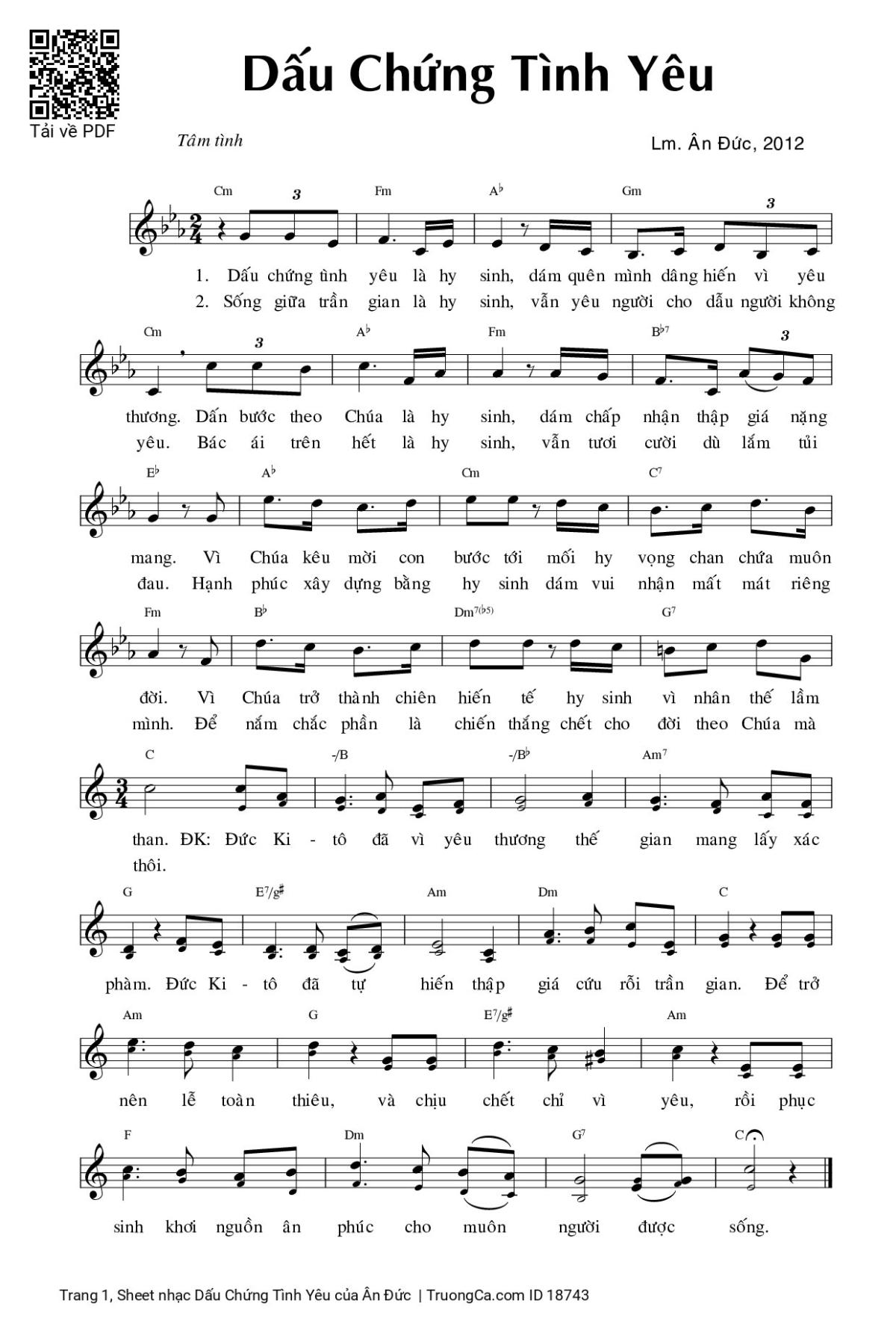 Ân Đức Dấu chứng tình yêu là hy sinh dám quên mình dâng hiến vì yêu thương [PDF] [Sheet] [Lời H.A] [Mp4/Midi]
