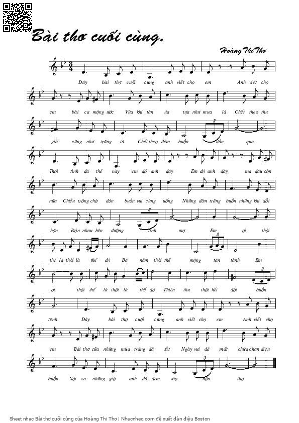 Hoàng Thi Thơ Đây bài thơ cuối cùng anh viết cho em Anh viết cho em bài ca mộng ước [PDF] [Sheet] [Lời H.A] [Mp4/Midi]