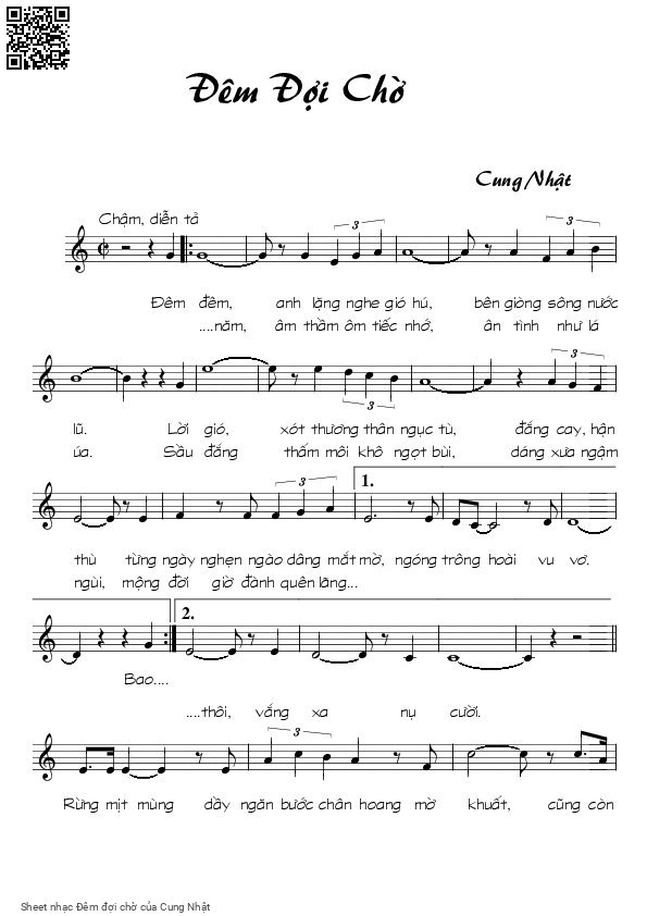 Chọn nút dấu + để tăng tông lên nửa cung, nút dấu - để giảm tông xuống nửa cung. Rê chuột vào hợp âm để xem các thế bấm hợp âm của bài hát Đêm đợi chờ.