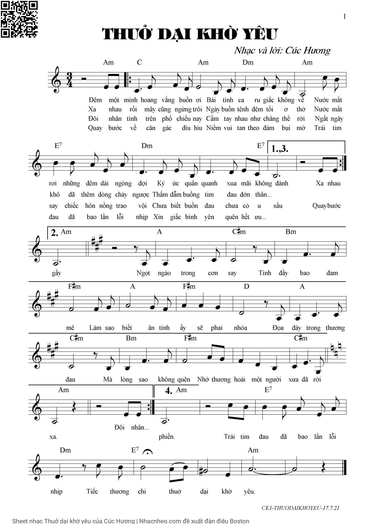 Cúc Hương Đêm một mình hoang vắng buồn ơi Bài tình ca ru giấc không về [PDF] [Sheet] [Lời H.A] [Mp4/Midi]