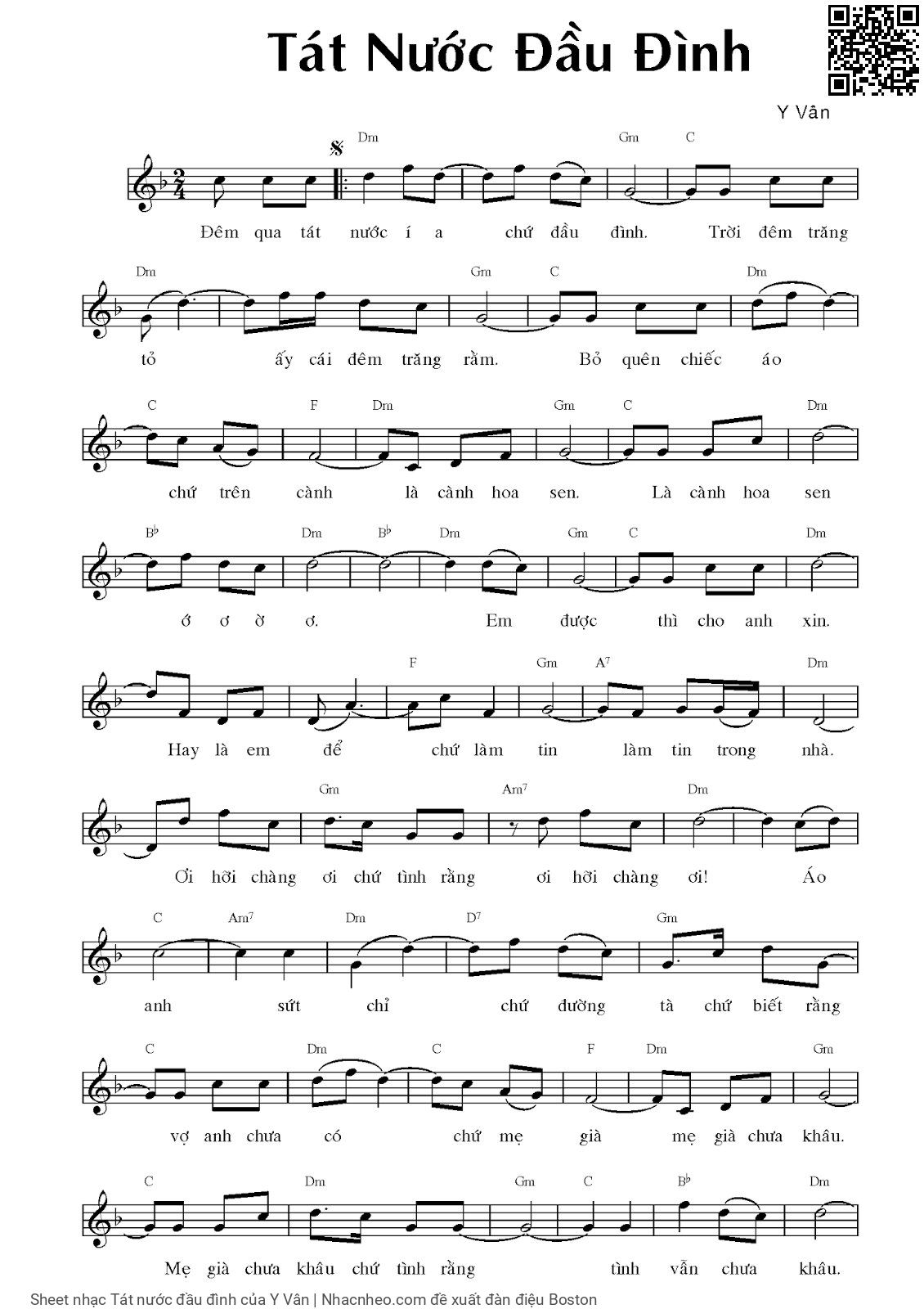Y Vân Đêm qua tát nước í a chứ đầu đình Trời đêm sáng tỏ ấy cái đêm trăng rằm [PDF] [Sheet] [Lời H.A] [Mp4/Midi]