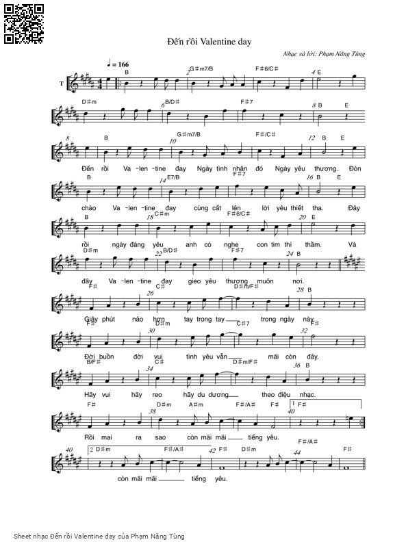 Phạm Năng Tùng Đến rồi Valentine day Ngày tình nhân đó ngày yêu thương [PDF] [Sheet] [Lời H.A] [Mp4/Midi]