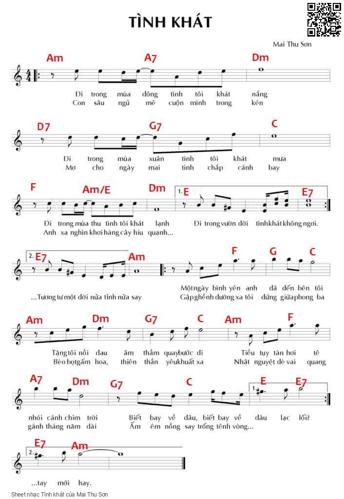 Mai Thu Sơn Đi trong mùa đông tình tôi khát nắng Đi trong mùa xuân tình tôi khát mưa [PDF] [Sheet] [Lời H.A] [Mp4/Midi]