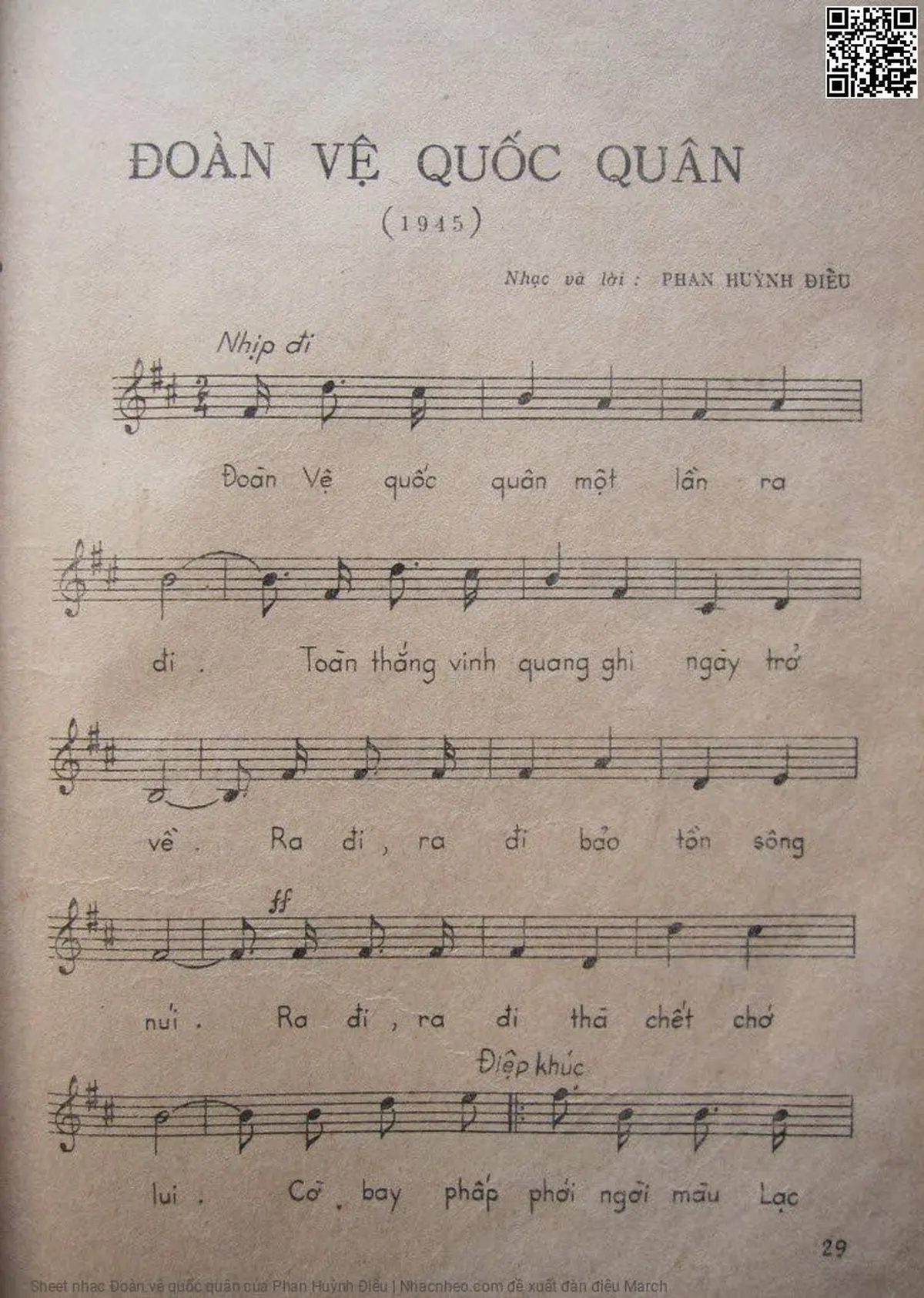 Phan Huỳnh Điểu Đoàn vệ quốc quân một lần ra đi Dù có gian nguy nhưng lòng không nề [PDF] [Sheet] [Lời H.A] [Mp4/Midi] [Lời bình - giai thoại]