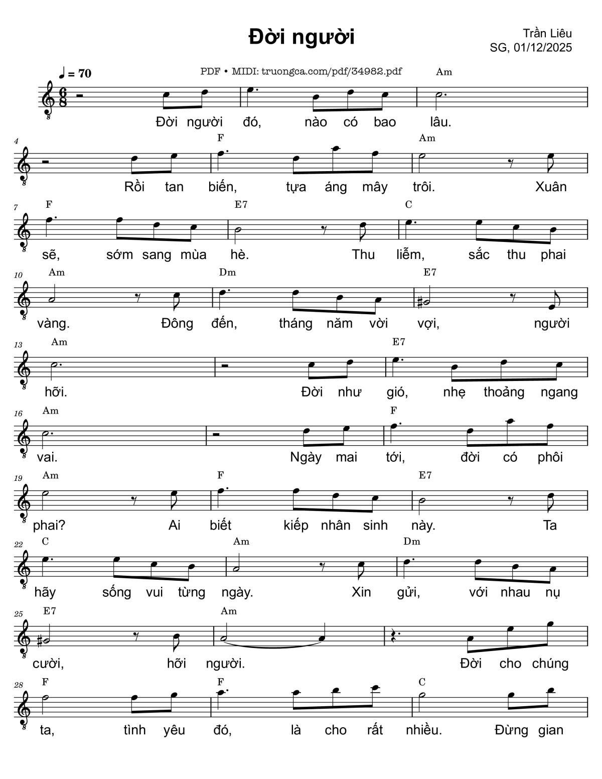 Trần Liêu Đời người đó nào có bao lâu Rồi tan biến [PDF] [Sheet] [Lời H.A] [Mp4/Midi]