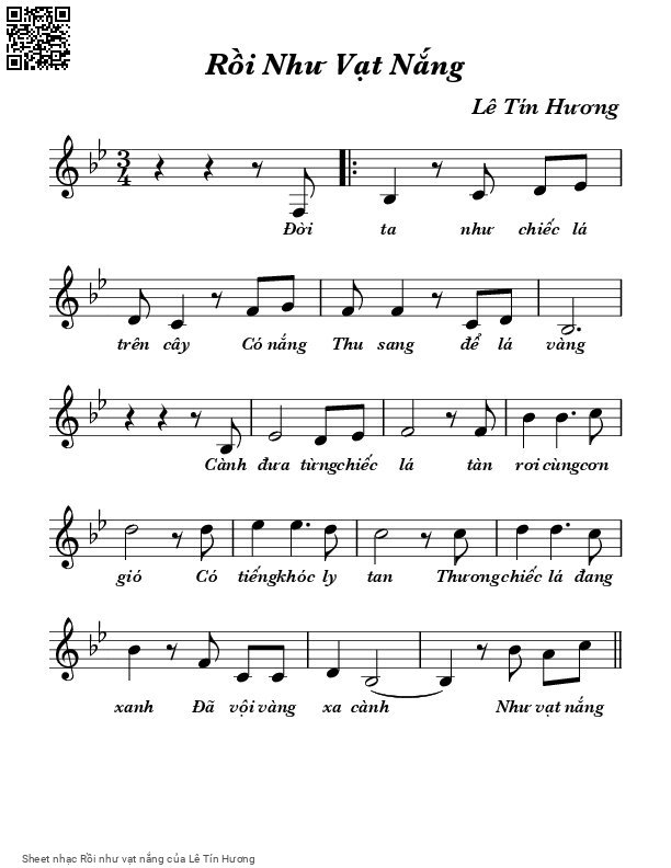 Lê Tín Hương Đời ta như chiếc lá trên cây Có nắng thu sang để lá vàng [PDF] [Sheet] [Lời H.A] [Mp4/Midi]