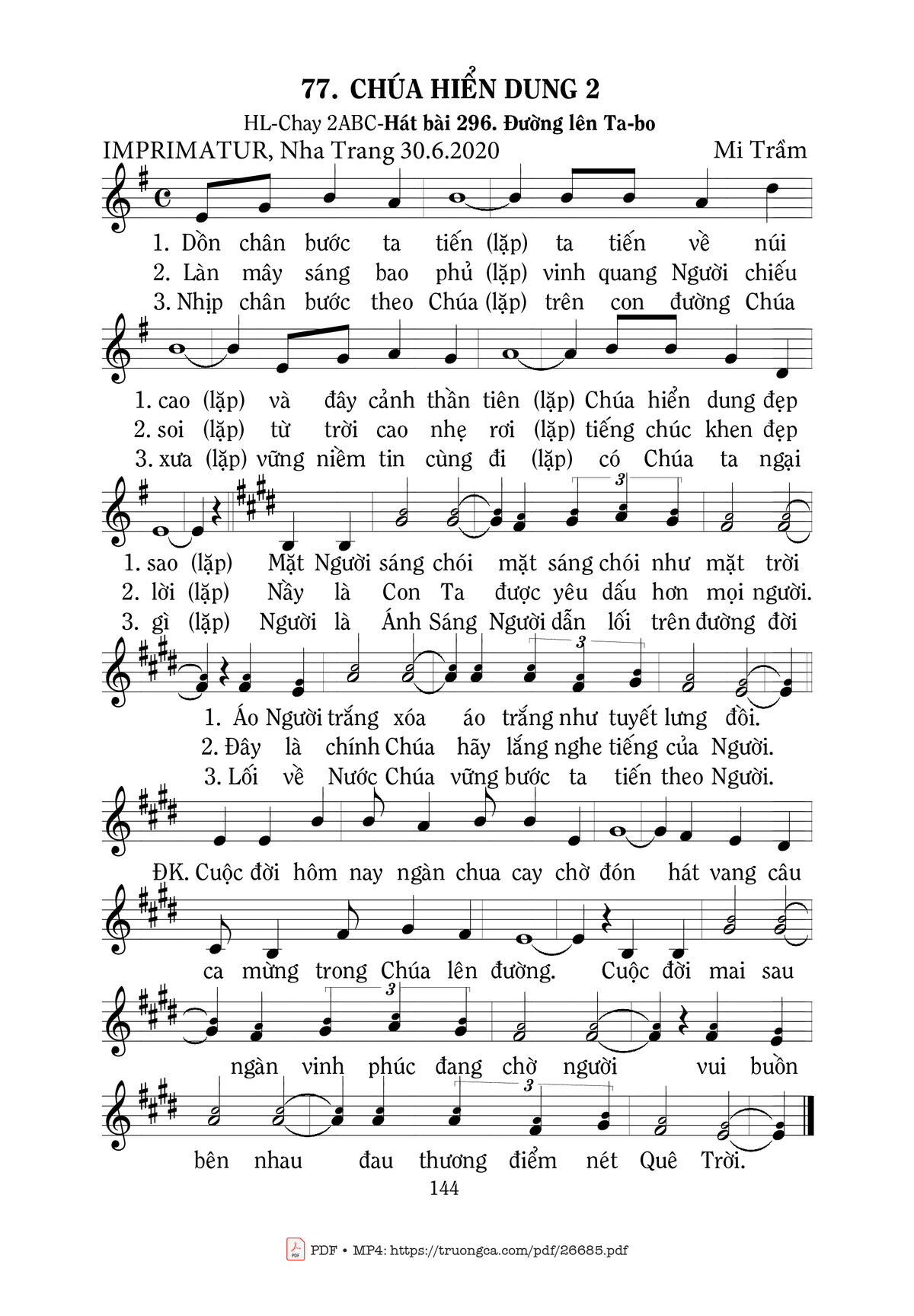 Mi Trầm Dồn chân bước ta tiến ta tiến về núi cao và đây cảnh thần tiên Chúa hiển dung đẹp sao [PDF] [Sheet] [Lời H.A] [Mp4/Midi]