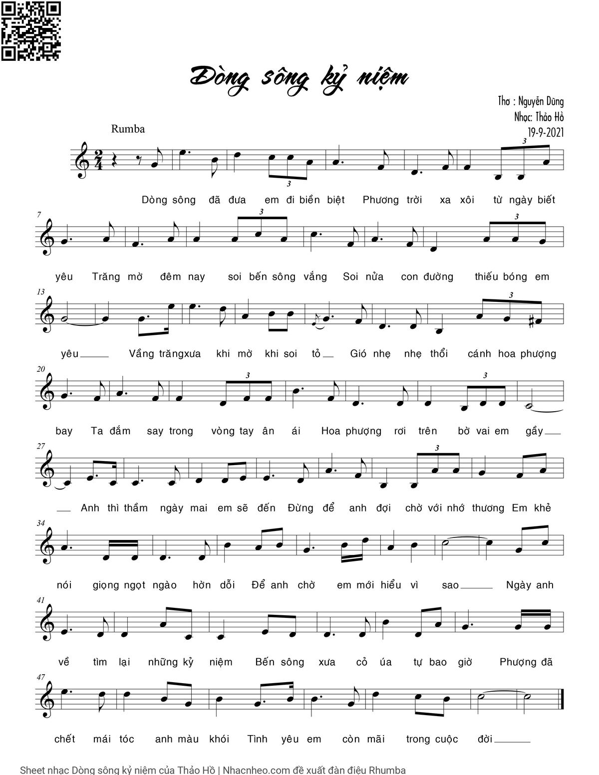 Phần nghe hát Dòng sông kỷ niệm (Thảo Hồ) được nhúng từ Youtube, Musescore hoặc link ngoài và chịu sự kiểm soát bản quyền của bên thứ ba đó, vì vậy có thể bị xóa hoặc chèn quảng cáo bất kỳ lúc nào. Nếu bạn không nghe - xem được ca sĩ hát tức là đã bị Youtube hoặc Musescore kiểm soát.
