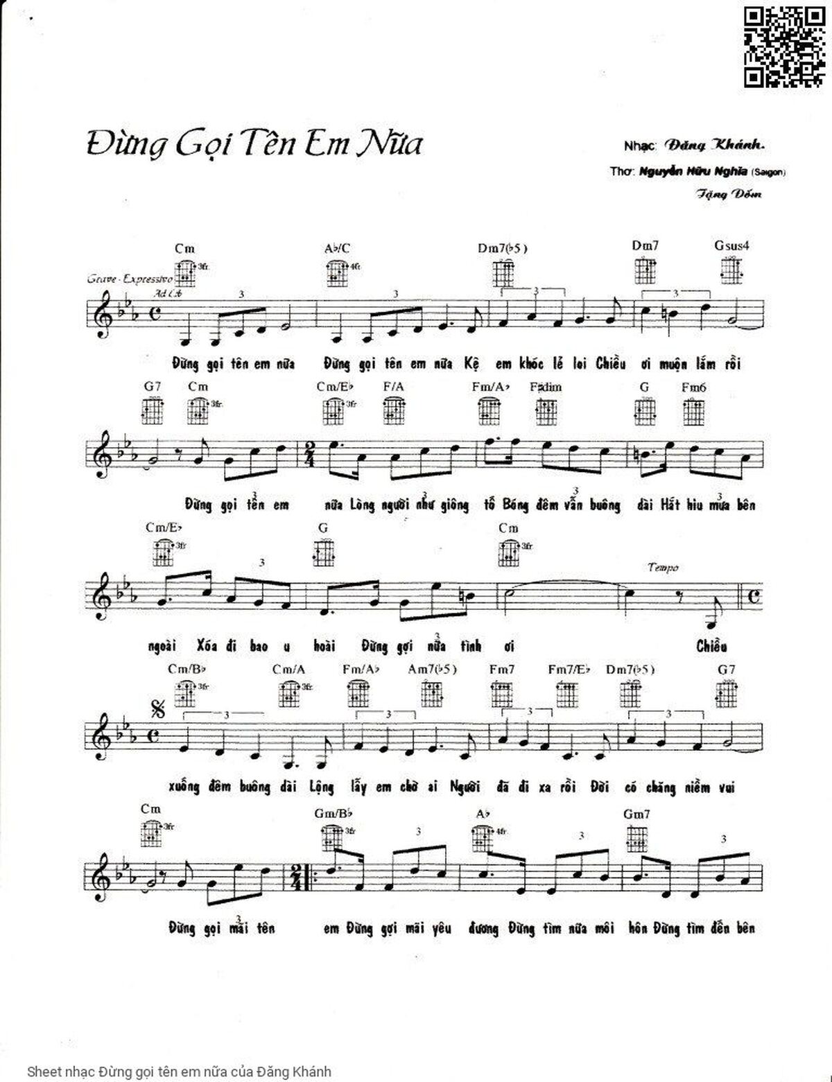 Đăng Khánh Đừng gọi tên em nữa đừng gọi tên em nữa [PDF] [Sheet] [Lời H.A] [Mp4/Midi]