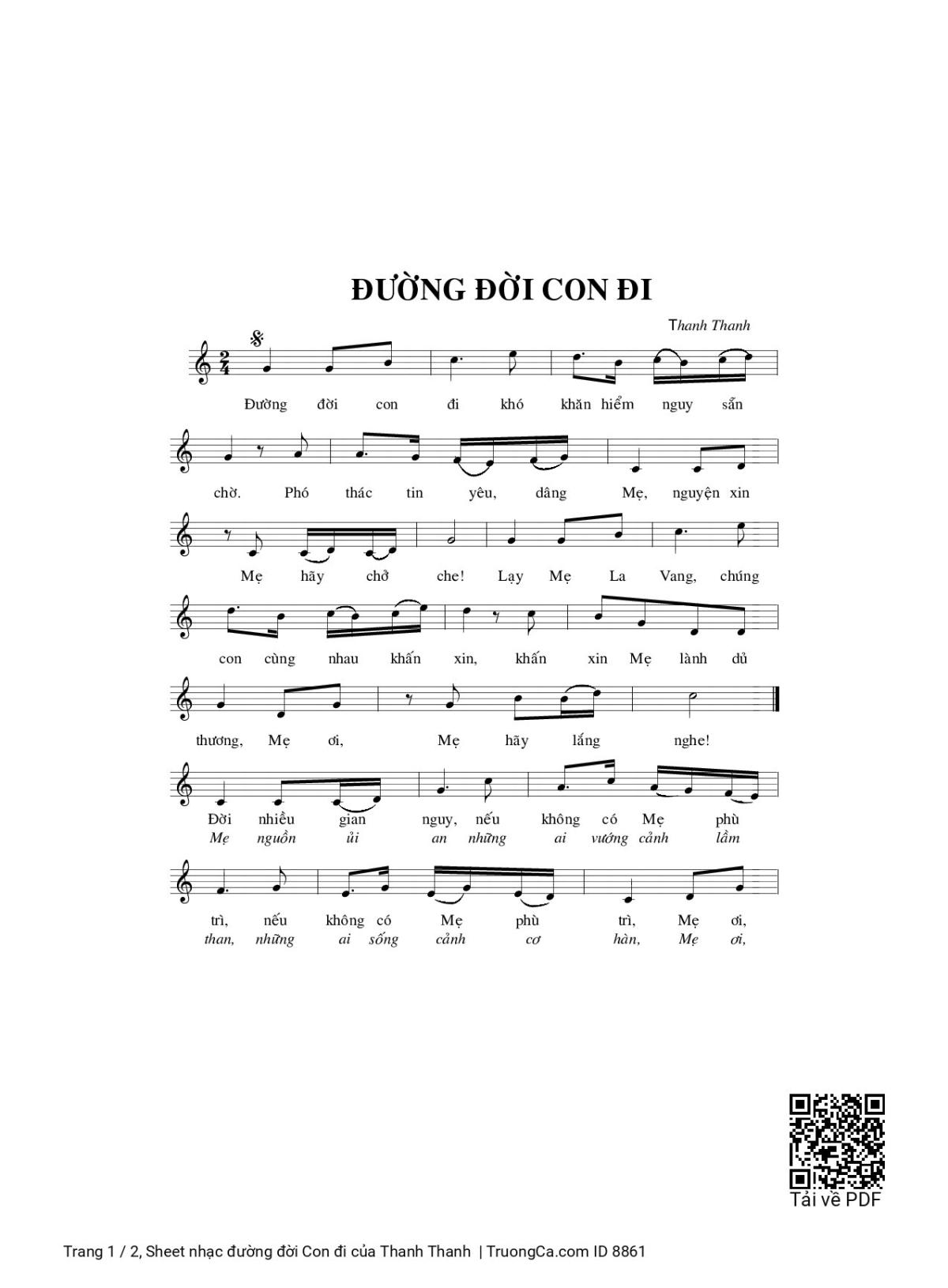 Chọn nút dấu + để tăng tông lên nửa cung, nút dấu - để giảm tông xuống nửa cung. Rê chuột vào hợp âm để xem các thế bấm hợp âm của bài hát đường đời Con đi.