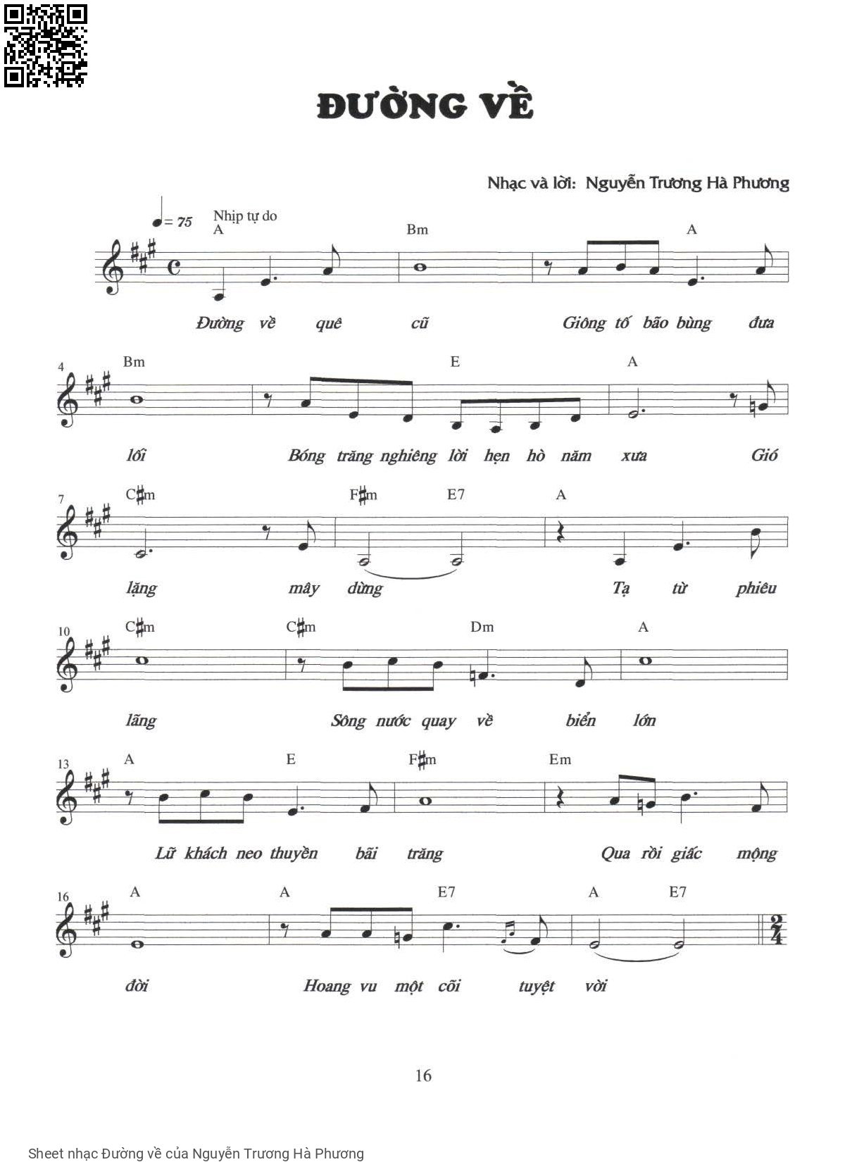 Chọn nút dấu + để tăng tông lên nửa cung, nút dấu - để giảm tông xuống nửa cung. Rê chuột vào hợp âm để xem các thế bấm hợp âm của bài hát Đường về.