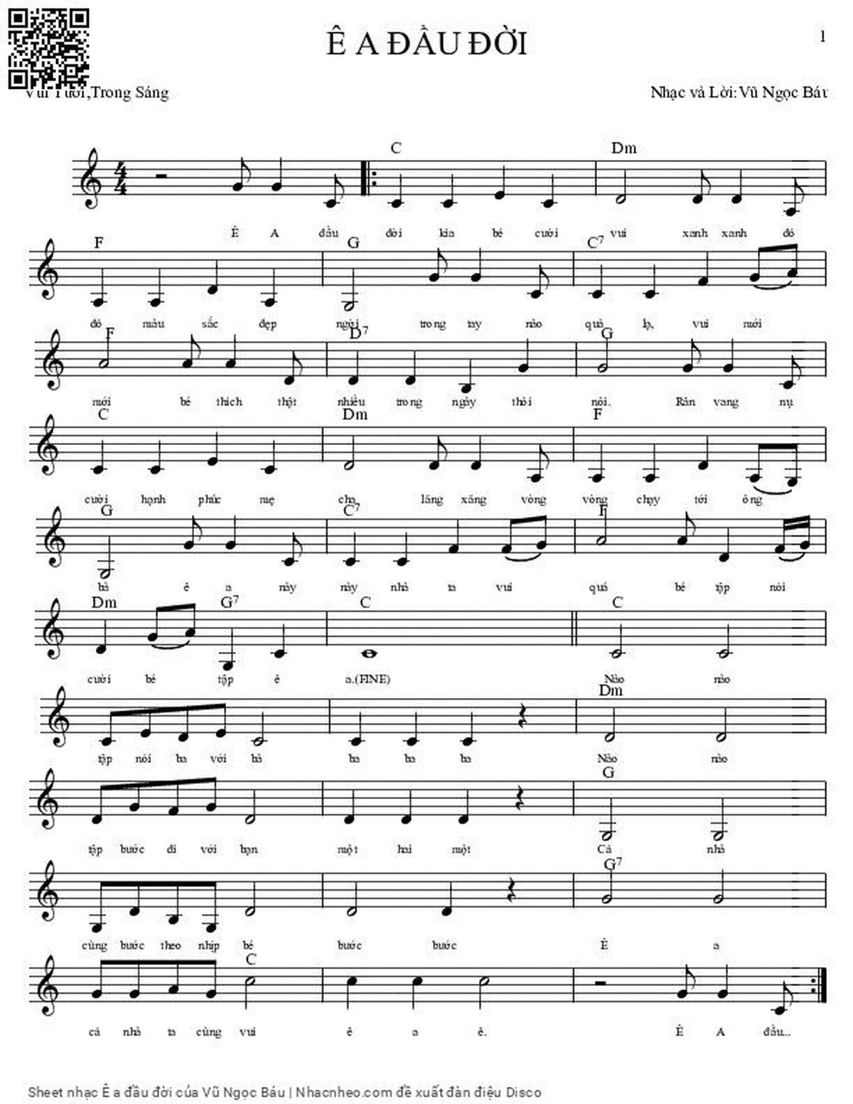 Vũ Ngọc Báu Ê a đầu đời kìa bé cười vui Xanh xanh đỏ đỏ màu sắc đẹp ngời [PDF] [Sheet] [Lời H.A] [Mp4/Midi]