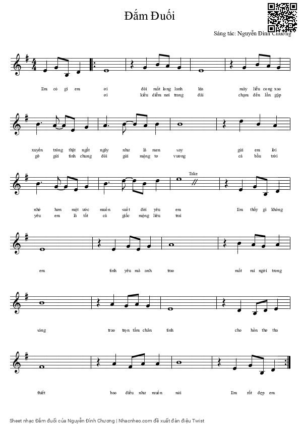 Nguyễn Đình Chương Em có gì em ơi Đôi mắt long lanh kìa Mày liễu cong xao xuyến [PDF] [Sheet] [Lời H.A] [Mp4/Midi]