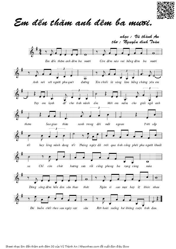 Vũ Thành An Em đến thăm anh đêm ba mươi Còn đêm nào vui bằng đêm ba mươi [PDF] [Sheet] [Lời H.A] [Mp4/Midi] [Lời bình - giai thoại]