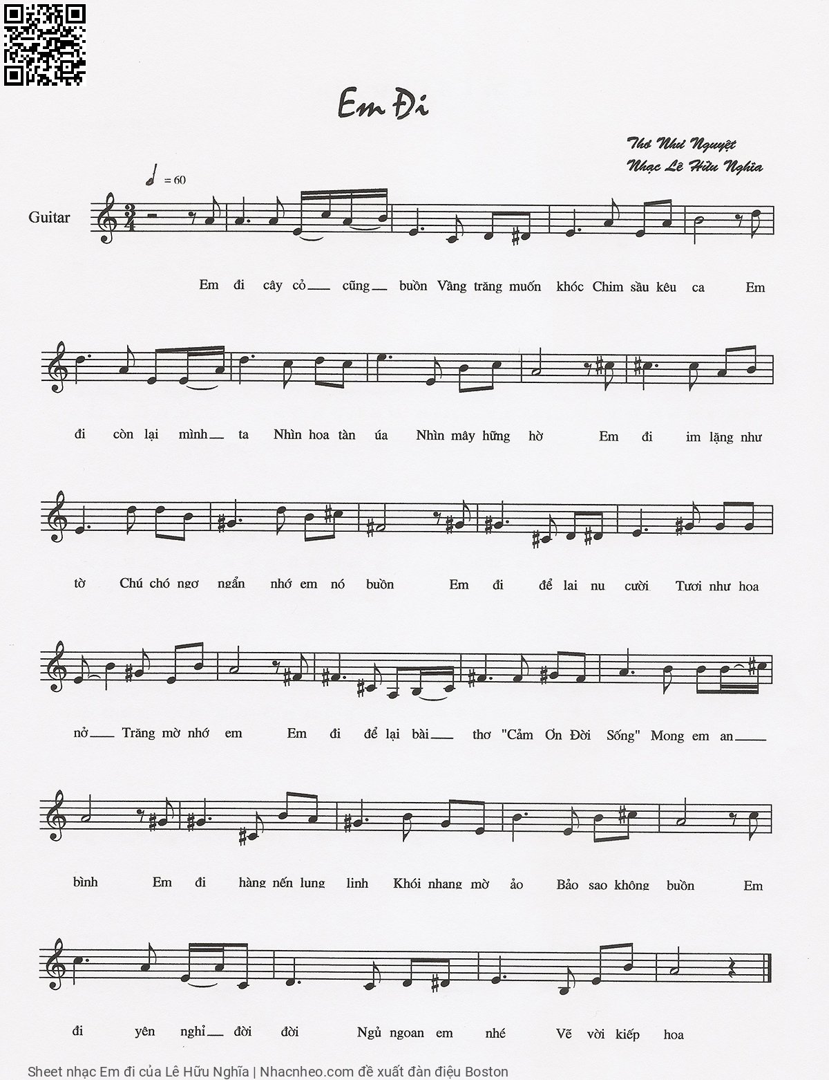 Lê Hữu Nghĩa Em đi cây cỏ cũng buồn Vầng trăng muốn khóc chim sầu kêu ca [PDF] [Sheet] [Lời H.A] [Mp4/Midi]