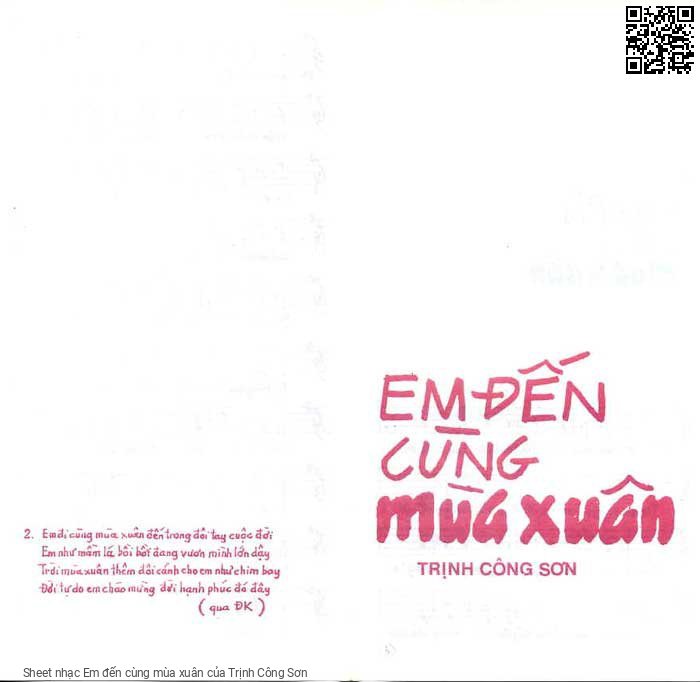 Trịnh Công Sơn Em đi cùng mùa xuân đến trong đôi tay cuộc đời [PDF] [Sheet] [Lời H.A] [Mp4/Midi]