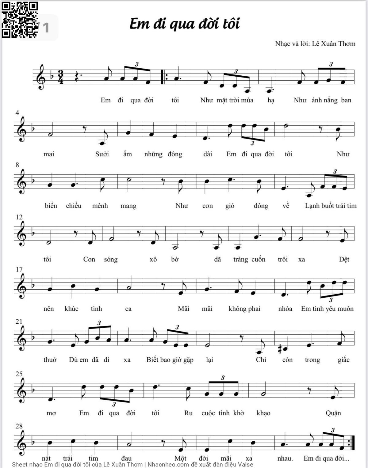 Lê Xuân Thơm Em đi qua đời tôi như mặt trời mùa Hạ [PDF] [Sheet] [Lời H.A] [Mp4/Midi]