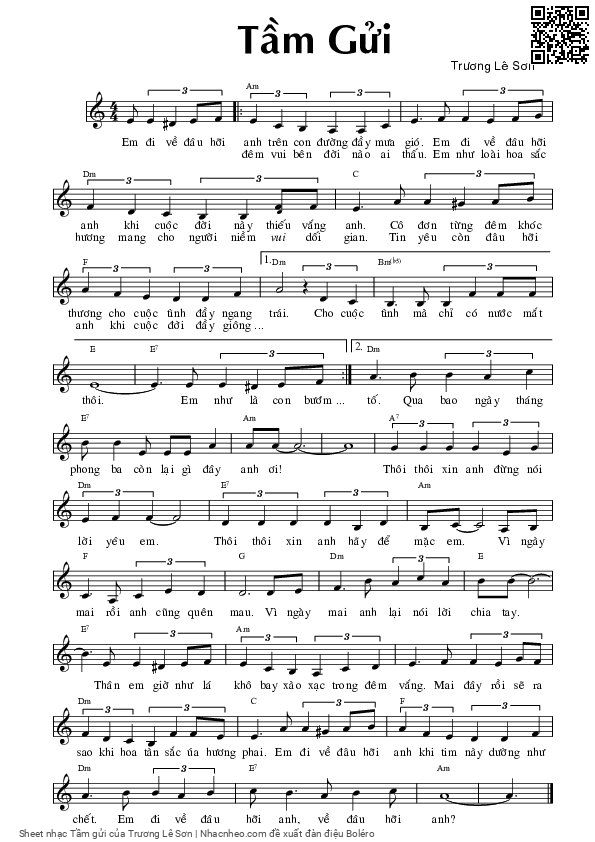 Trương Lê Sơn Em đi về đâu hỡi anh trên con đường đầy mưa gió [PDF] [Sheet] [Lời H.A] [Mp4/Midi]