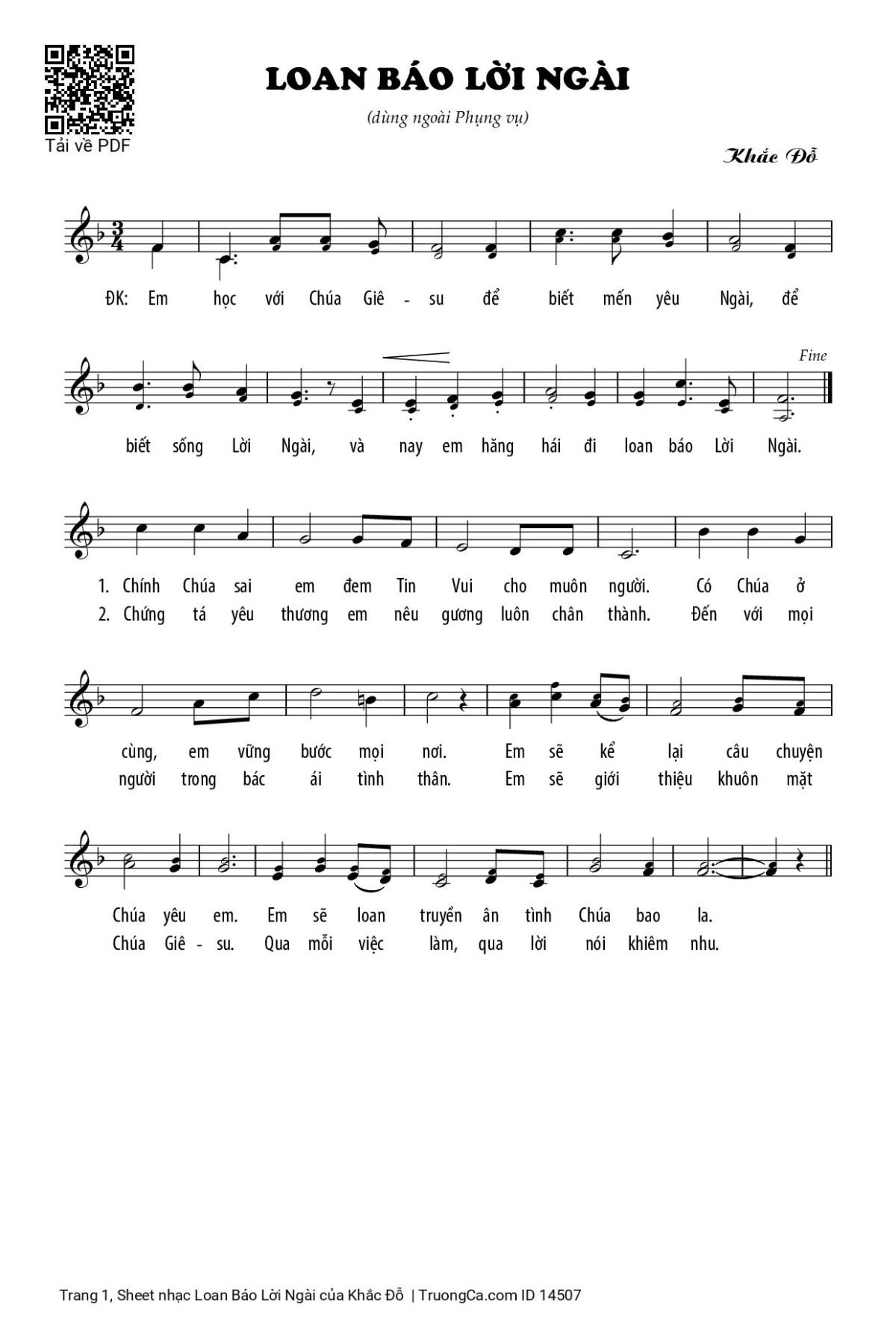 Các sheet PDF tương tự Loan Báo Lời Ngài: