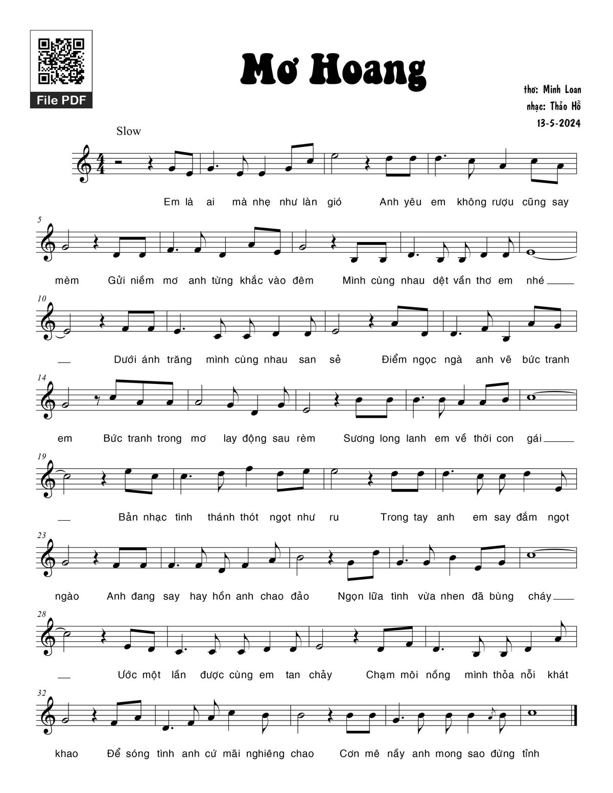 Phần nghe hát Mơ hoang (Thảo Hồ) được nhúng từ Youtube, Musescore hoặc link ngoài và chịu sự kiểm soát bản quyền của bên thứ ba đó, vì vậy có thể bị xóa hoặc chèn quảng cáo bất kỳ lúc nào. Nếu bạn không nghe - xem được ca sĩ hát tức là đã bị Youtube hoặc Musescore kiểm soát.
