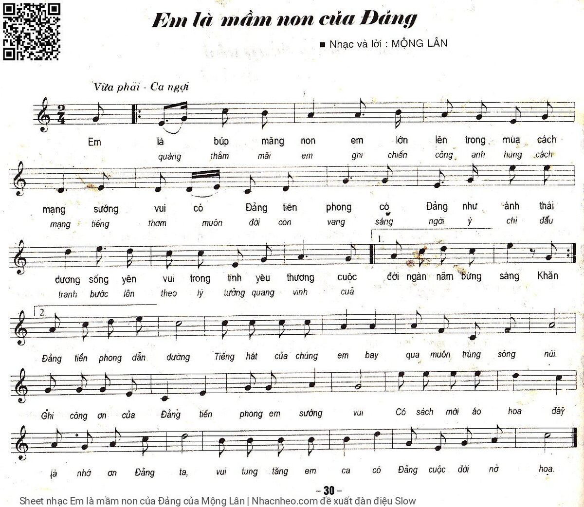 Mộng Lân Em là búp măng non em lớn lên trong mùa cách mạng [PDF] [Sheet] [Lời H.A] [Mp4/Midi]