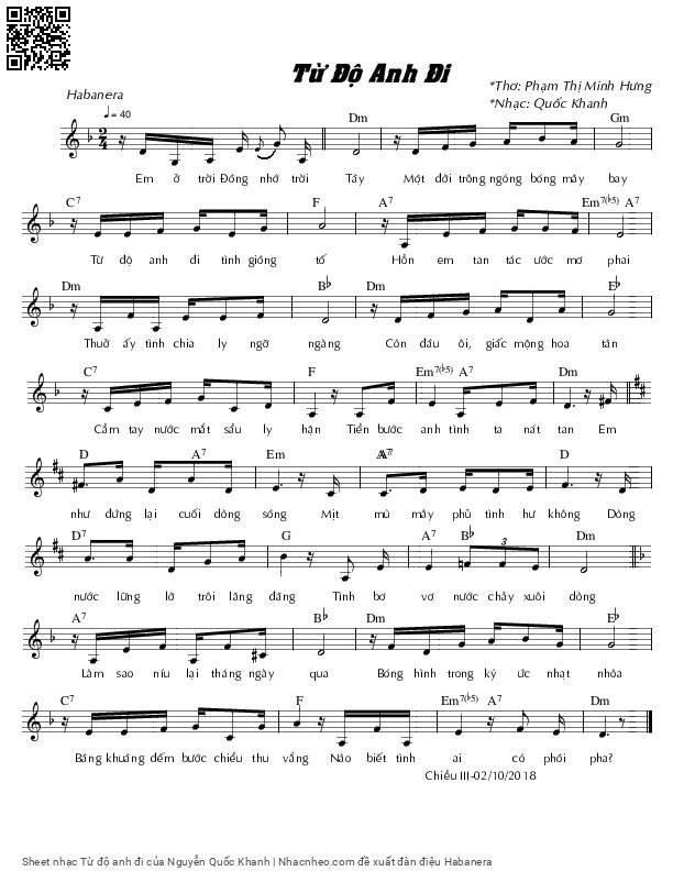 Nguyễn Quốc Khanh Em ở trời Đông nhớ trời Tây Một đời trông ngóng bóng mây bay [PDF] [Sheet] [Lời H.A] [Mp4/Midi]