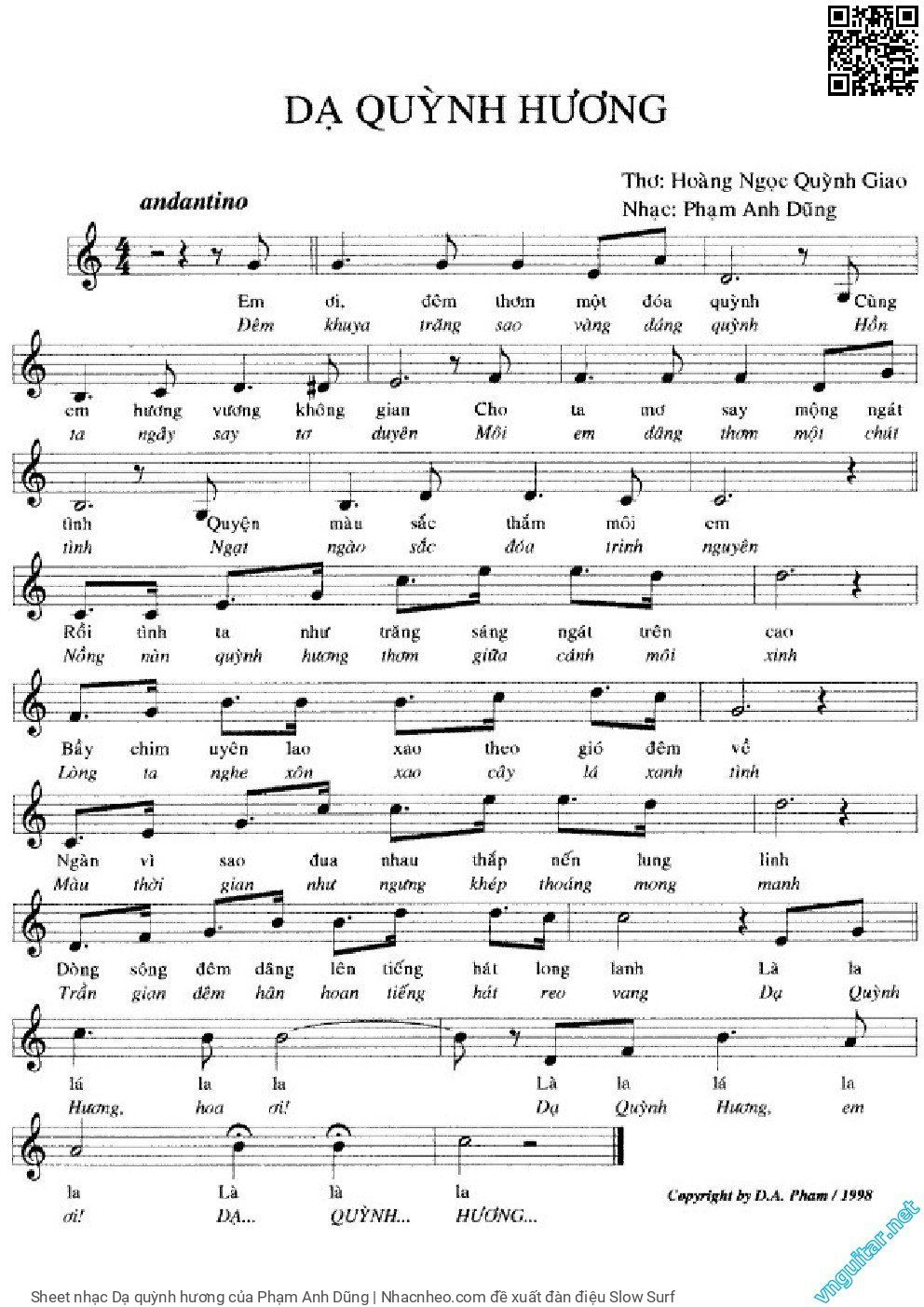 Phạm Anh Dũng Em ơi đêm thơm một đoá quỳnh [PDF] [Sheet] [Lời H.A] [Mp4/Midi]