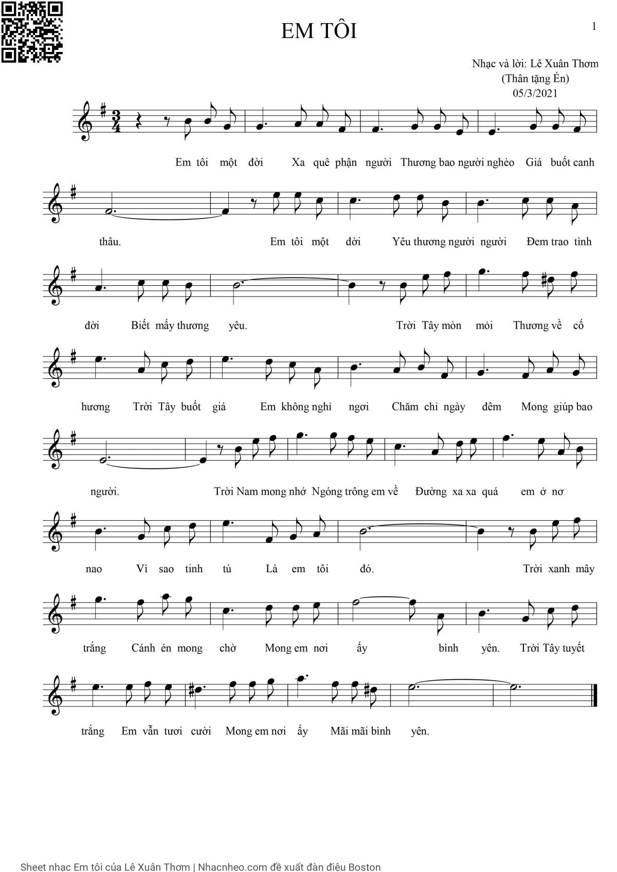 Lê Xuân Thơm Em tôi một đời xa quê phận người Thương bao người nghèo giá buốt canh thâu [PDF] [Sheet] [Lời H.A] [Mp4/Midi]