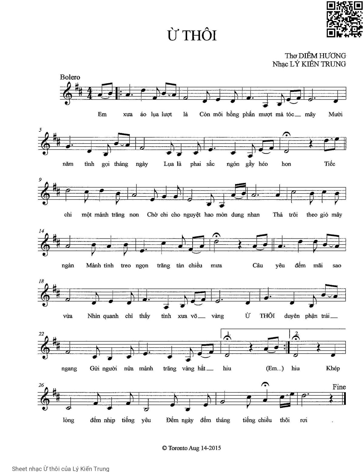 Lý Kiến Trung Em xưa áo lụa lượt là Còn môi hồng phấn mượt mà tóc mây [PDF] [Sheet] [Lời H.A] [Mp4/Midi]