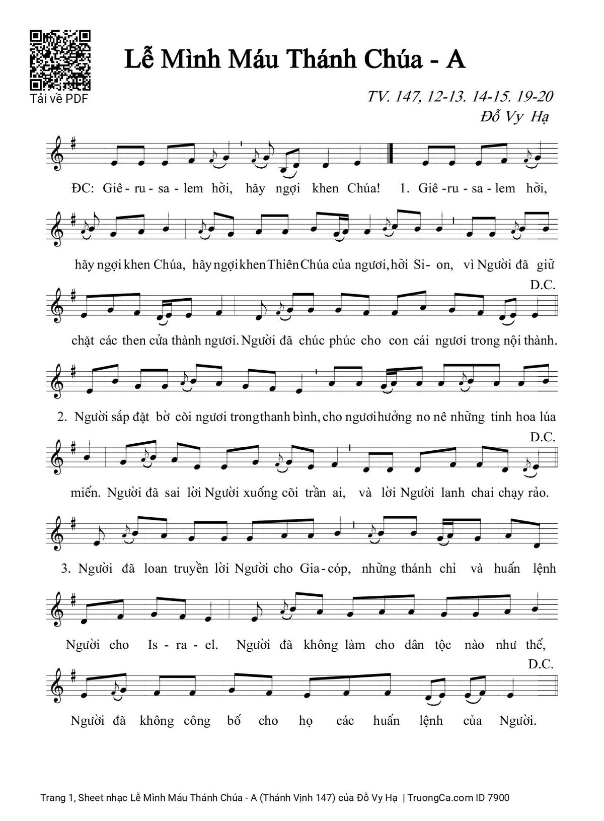 Các sheet PDF tương tự Lễ Mình Máu Thánh Chúa - A (Thánh Vịnh 147):