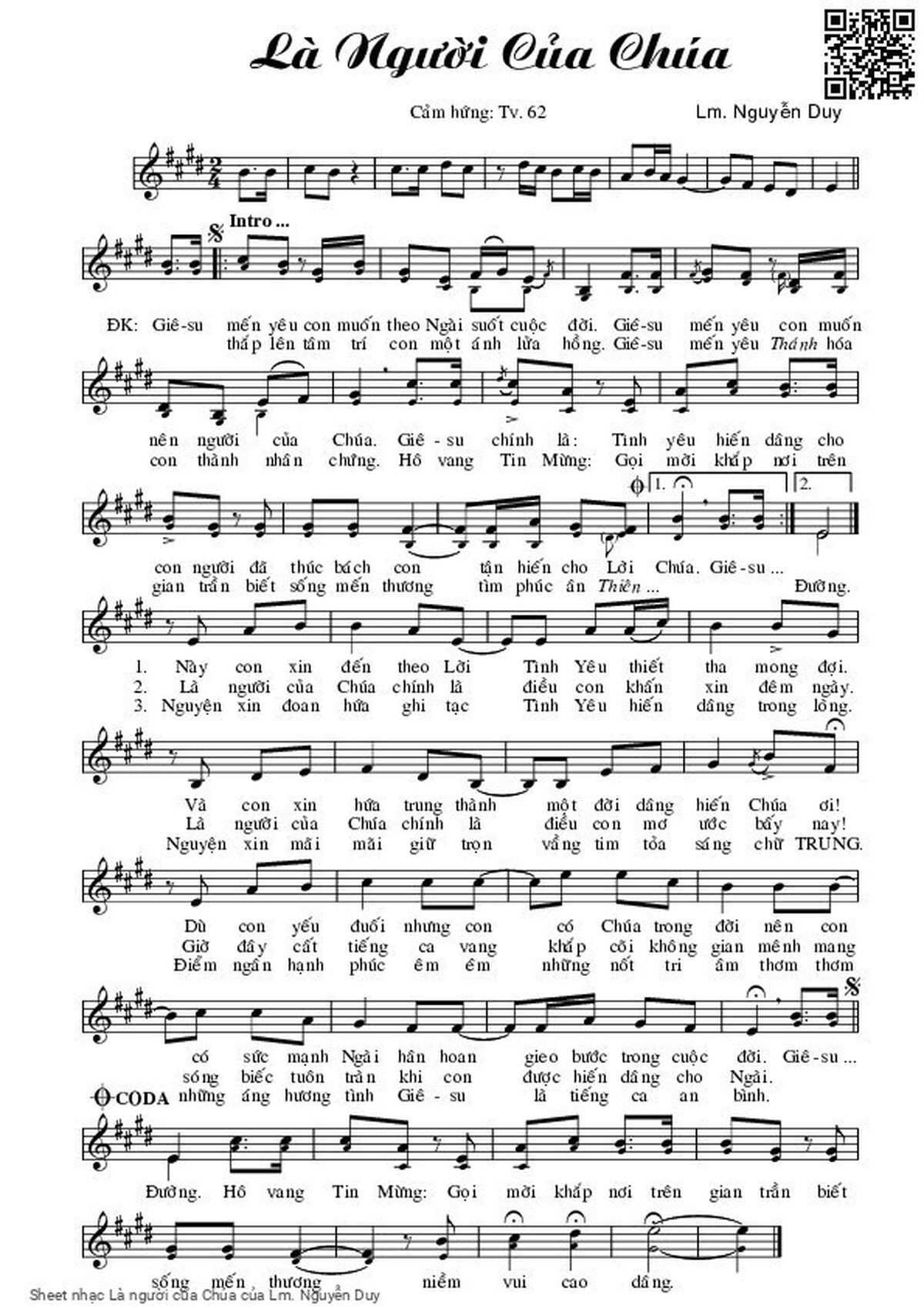 Chọn nút dấu + để tăng tông lên nửa cung, nút dấu - để giảm tông xuống nửa cung. Rê chuột vào hợp âm để xem các thế bấm hợp âm của bài hát Là người của Chúa.