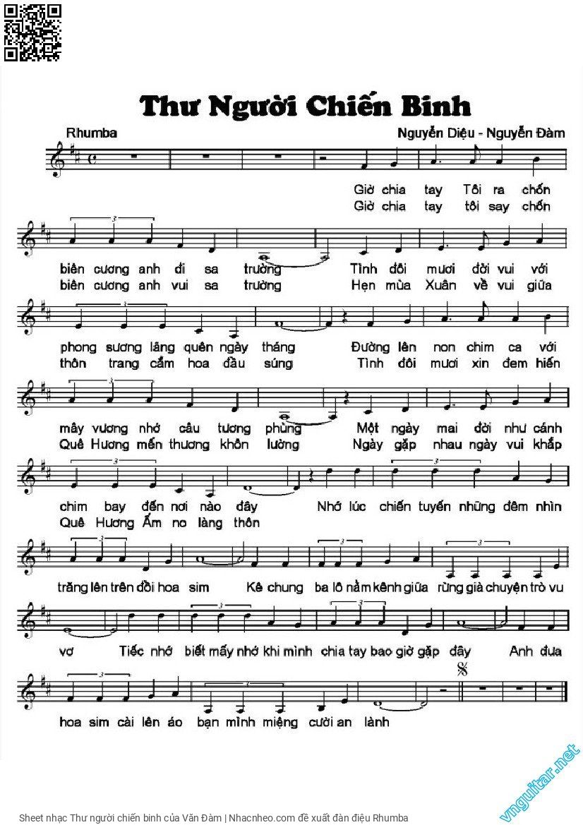 Chọn nút dấu + để tăng tông lên nửa cung, nút dấu - để giảm tông xuống nửa cung. Rê chuột vào hợp âm để xem các thế bấm hợp âm của bài hát Thư người chiến binh.