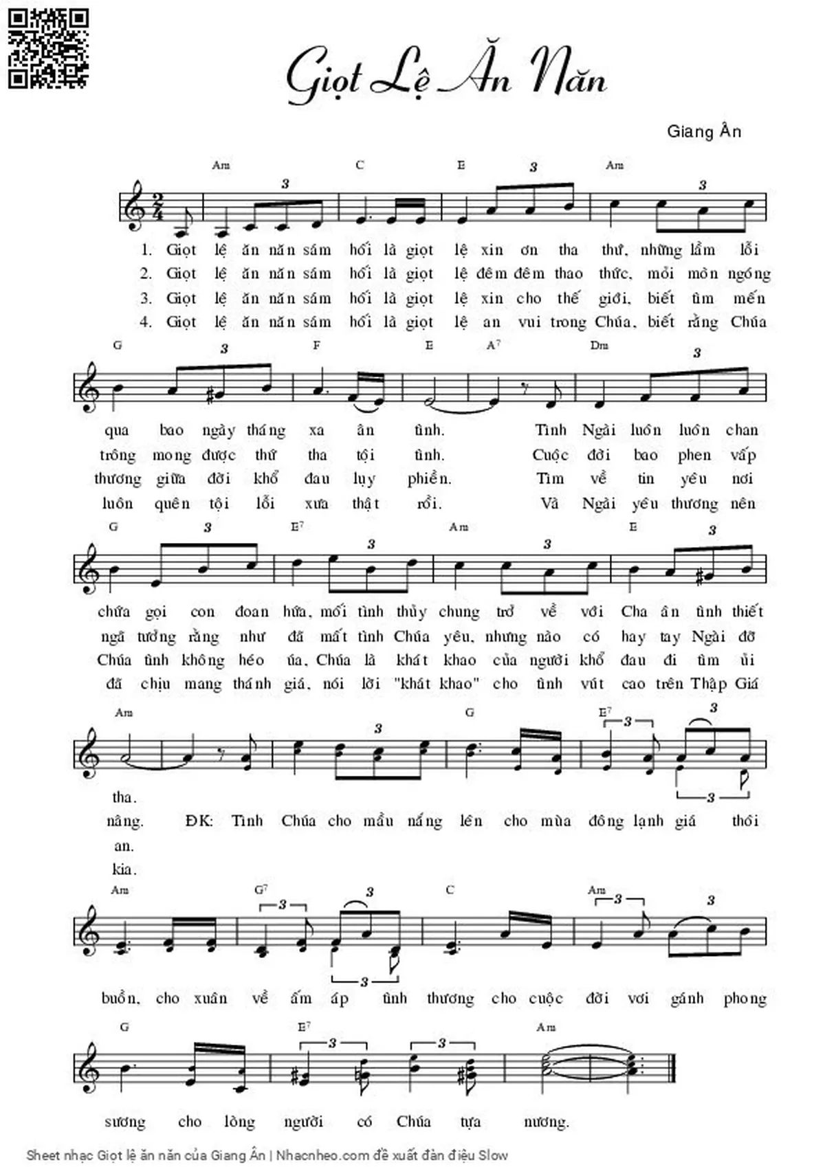 Giang Ân Giọt lệ ăn năn sám hối Là giọt lệ xin ơn tha thứ [PDF] [Sheet] [Lời H.A] [Mp4/Midi]