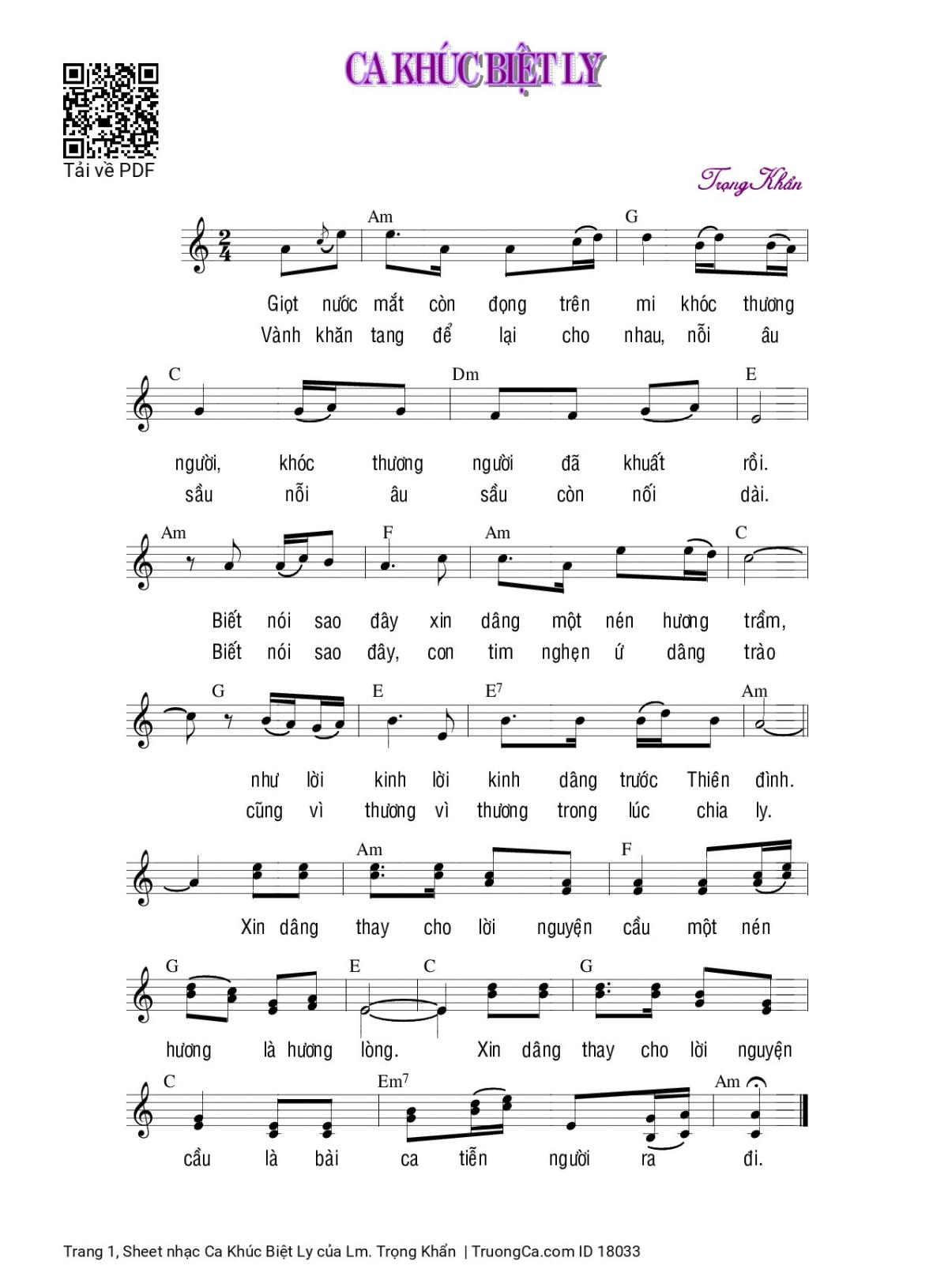Các sheet PDF tương tự Ca Khúc Biệt Ly: