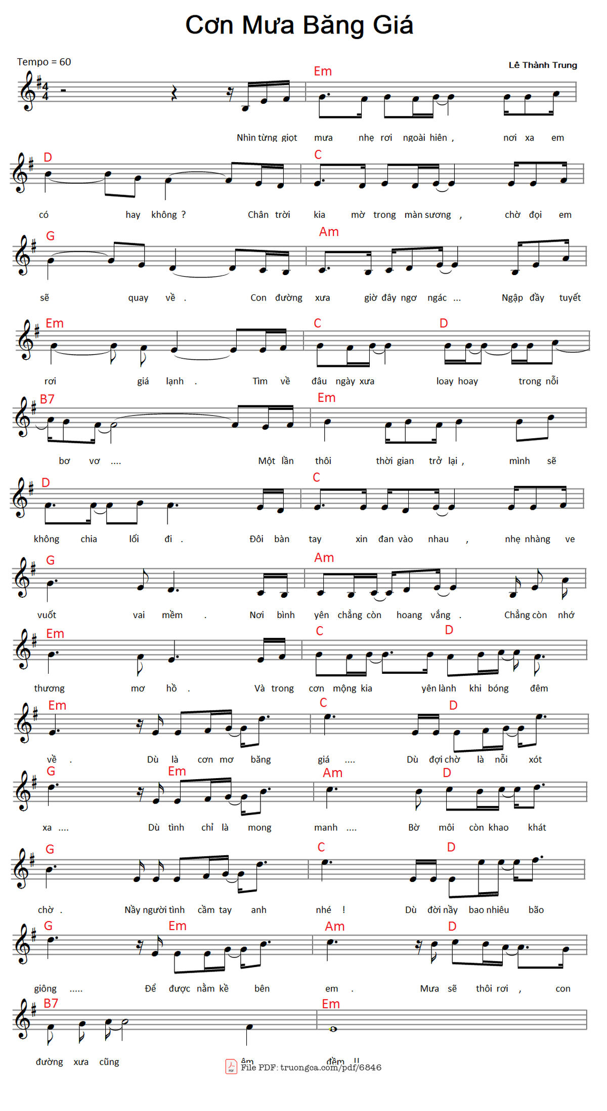 Lê Thành Trung Gồm Sheet Lời hợp âm và Sheet Piano đệm hát [PDF] [Sheet] [Lời H.A] [Mp4/Midi]