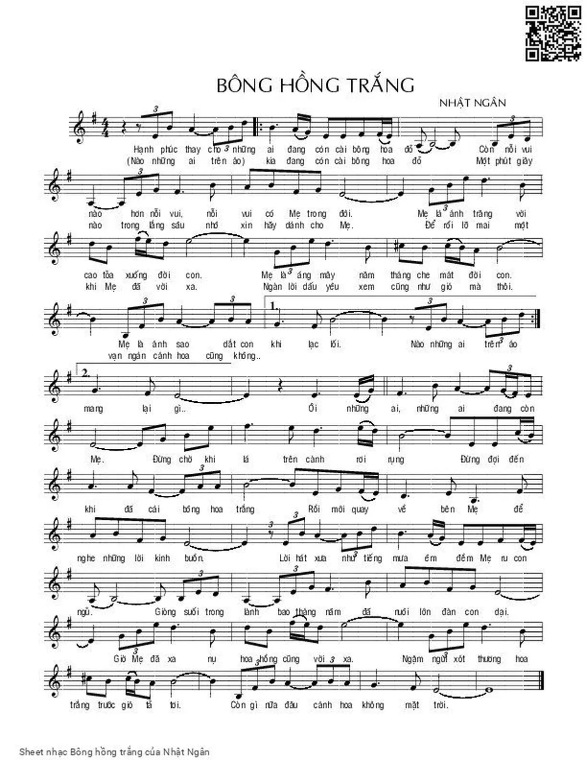 Chọn nút dấu + để tăng tông lên nửa cung, nút dấu - để giảm tông xuống nửa cung. Rê chuột vào hợp âm để xem các thế bấm hợp âm của bài hát Bông hồng trắng.