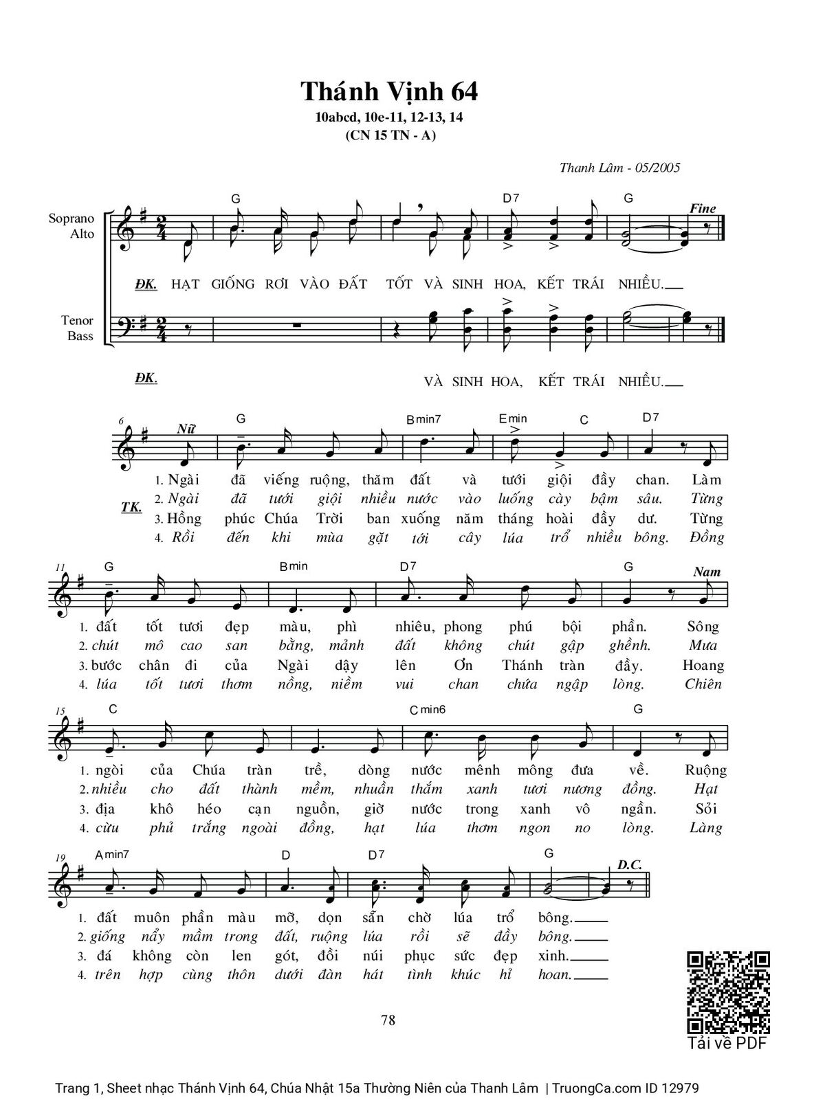 Các sheet PDF tương tự Thánh Vịnh 64, Chúa Nhật 15a Thường Niên: