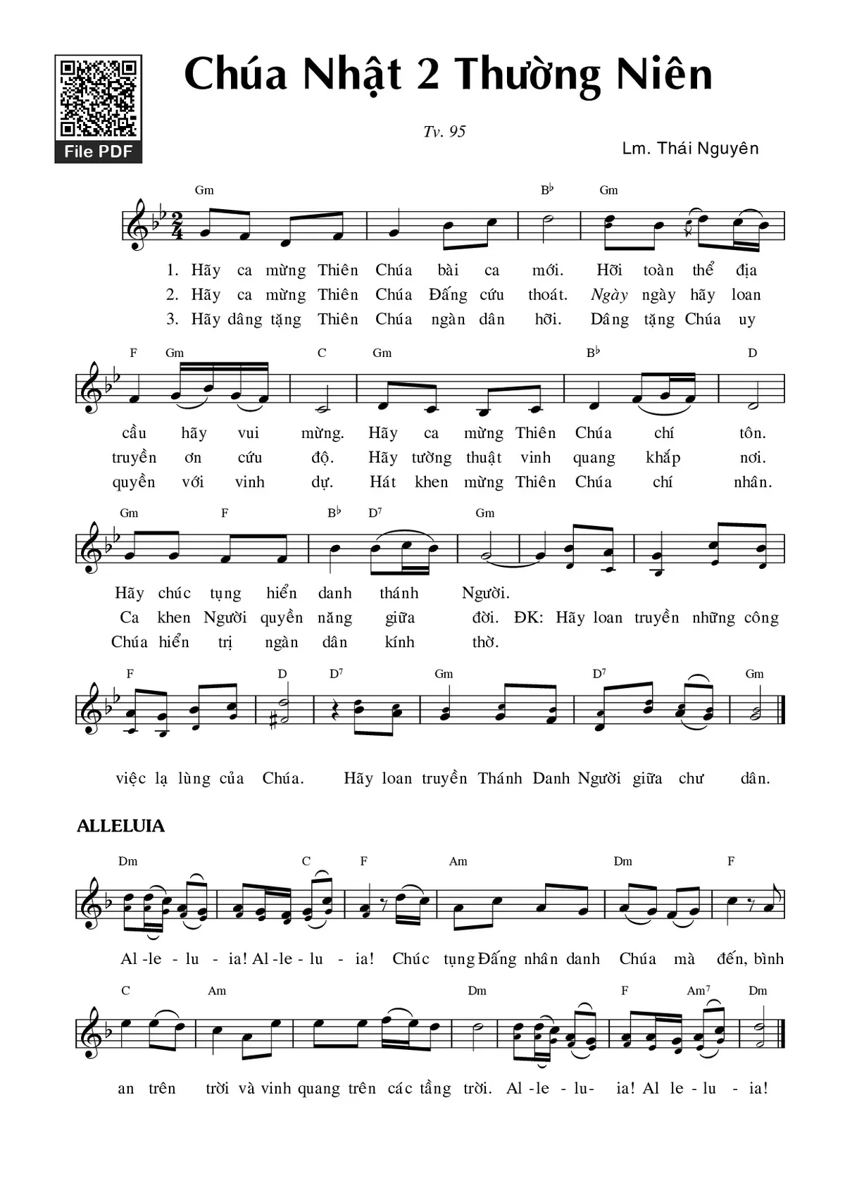 Thái Nguyên Hãy ca mừng Thiên Chúa bài ca mới Hỡi toàn thể địa cầu hãy vui mừng [PDF] [Sheet] [Lời H.A] [Mp4/Midi]