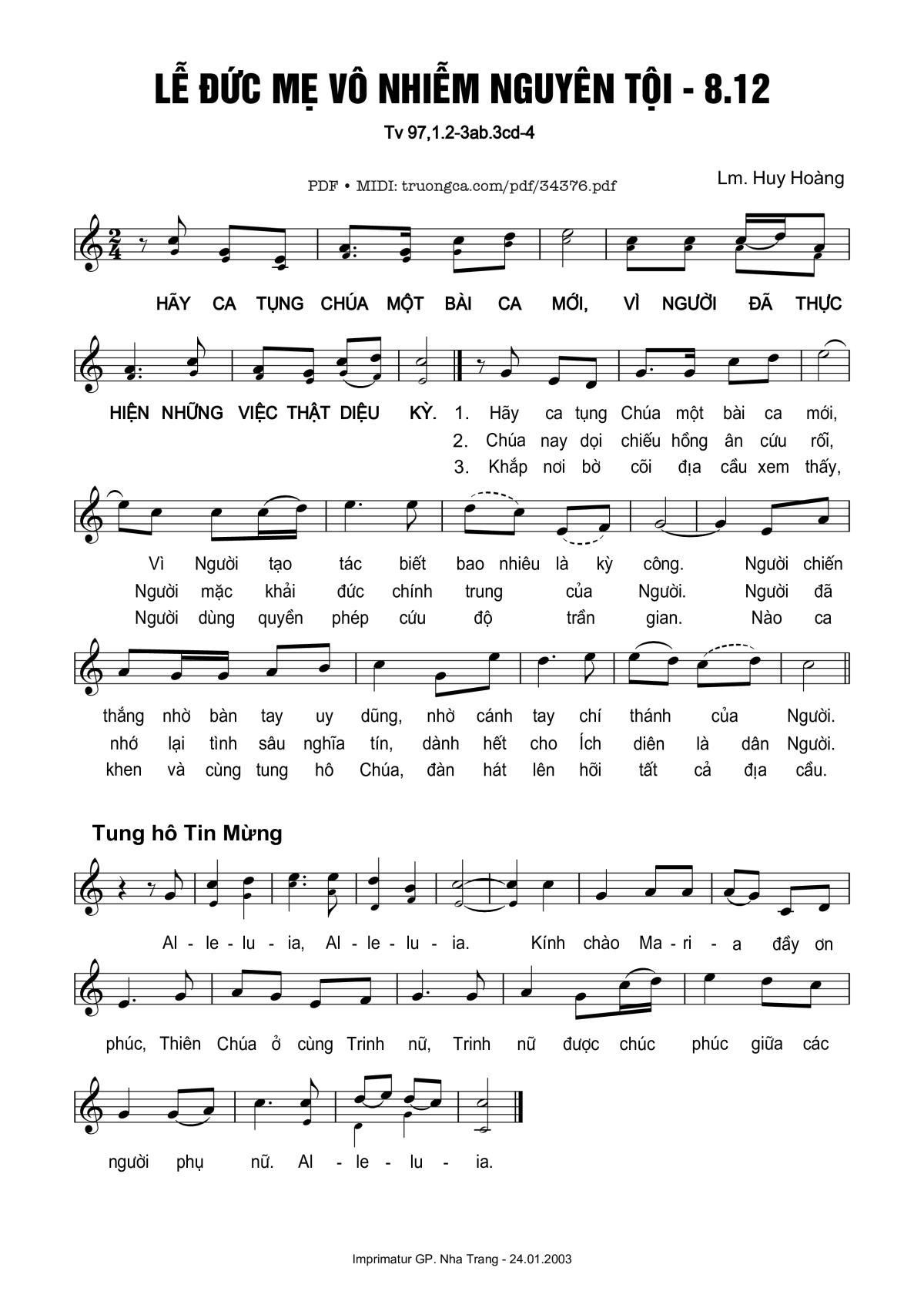 Các sheet PDF tương tự Thánh Vịnh 97, Lễ Đức Mẹ Vô Nhiễm Nguyên Tội 08.12: