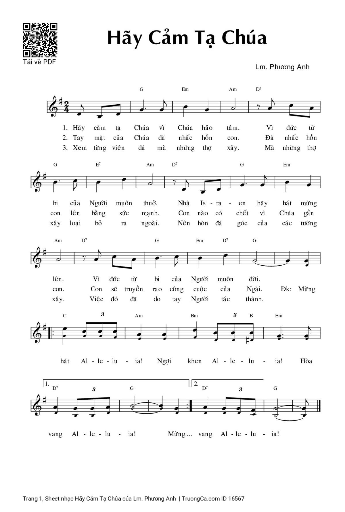 Điệp khúc. Mừng hát Al-le-lu-ia! Ngợi khen Al-le-lu-ia! Hòa vang Al-le-u-ia! Mừng hát Al-le-lu-ia! Ngợi khen Al-le-lu-ia! Hòa vang Al-le-u-ia!